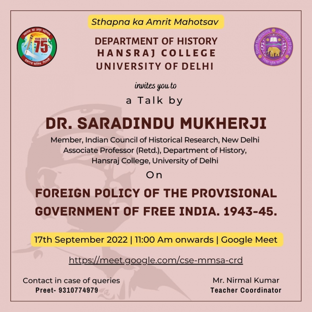 Location : Padmabhushan Gyan Prakash Chopra Seminar Room, Hansraj College