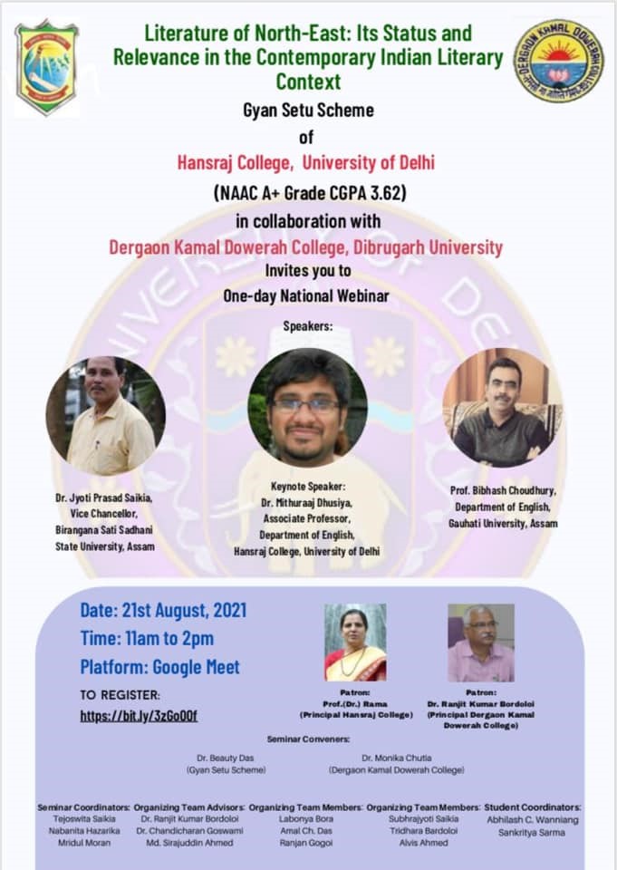 C. One-Day National Webinar — Literature of North-East: Its Status and Relevance in the Contemporary Indian Literary Context. (21 August 2021)