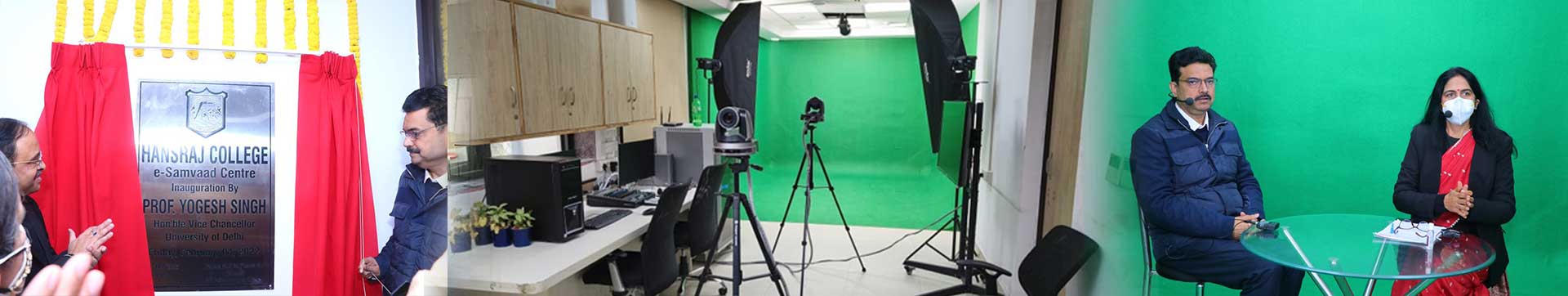 NAAC Grade A++ with CGPA 3.71 NIRF Rank # 3 (Amongst Colleges)Realizing that the blended mode of education is the future of education and leaping towards Digital India, Mahatma Hansraj Faculty Development Centre (MHRFDC) established its state of the art digital studio, the e-Samvaad centre, a centre for digital content creation equipped with all the modern devices like head worn mics, green chroma and an interactive panel for high quality e-content creation in the form of MOOCs as well as capturing interactions with distinguished people and learned academicians across the globe.