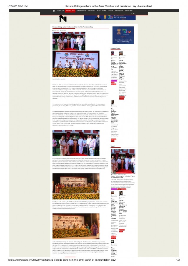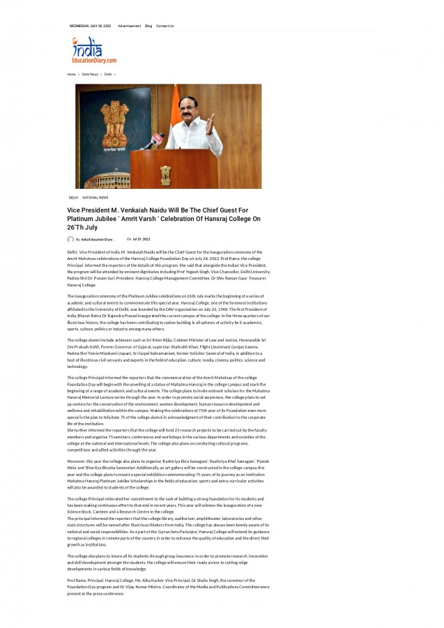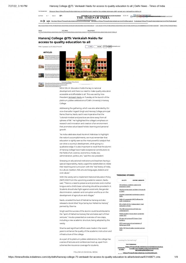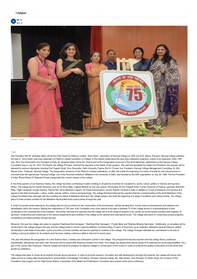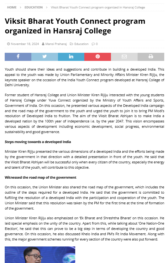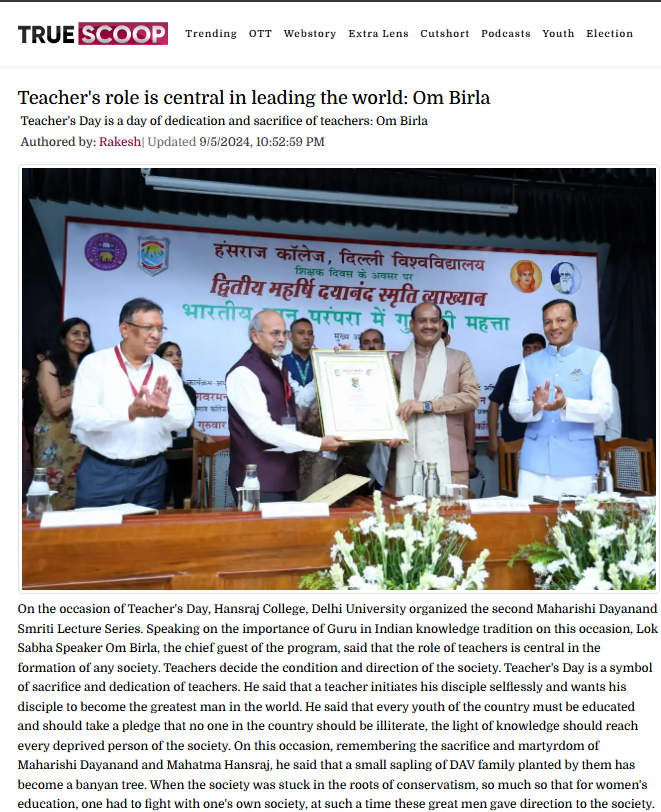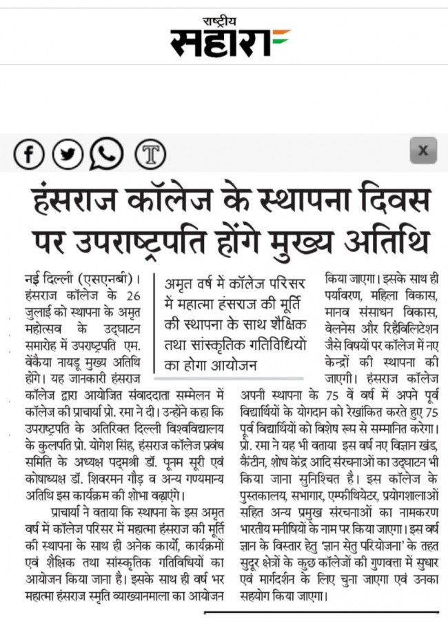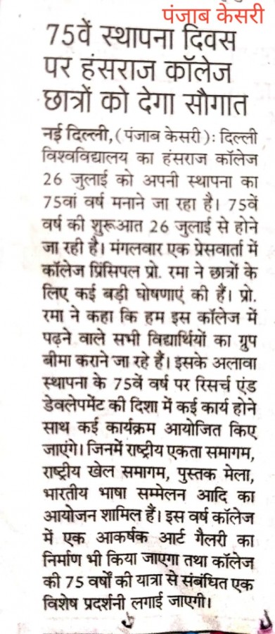 Ifrah Mufti spoke to Hansraj College Principal Professor Dr. Rama Sharma about the factors behind this achievement, the challenges faced, and the vision for the future.