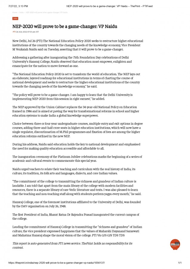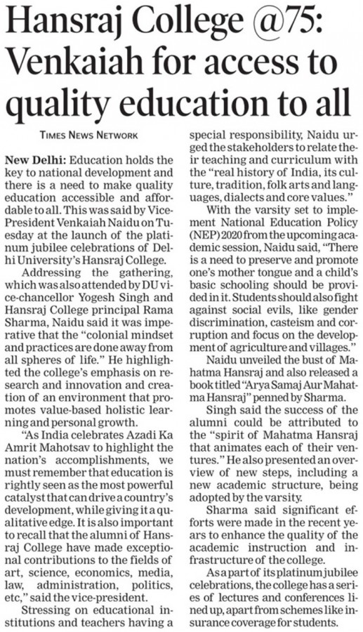 INTERVIEW | “Hansraj bridges gap between theory and practical learning”