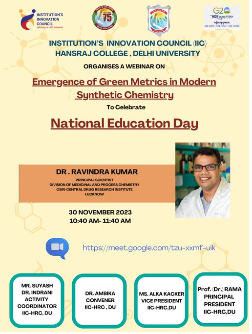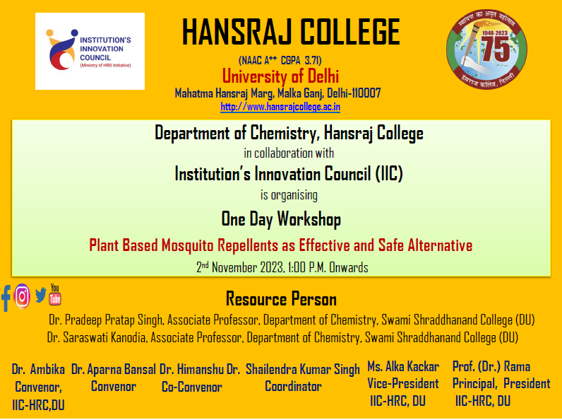 Organized By: Department of chemistry, Hansraj college in collaboration with IIC