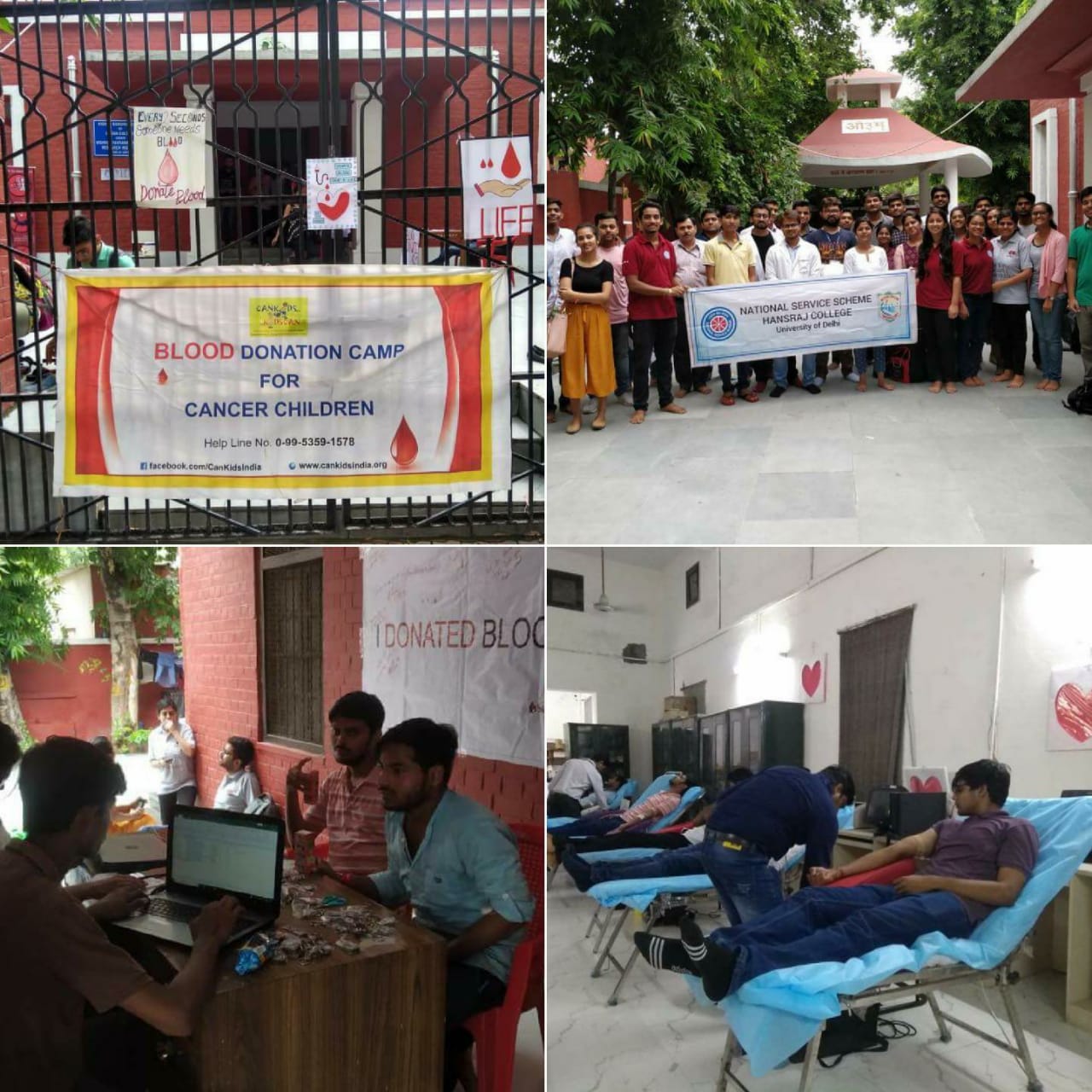 "Bring a life back to power, make blood donation your eternal responsibility." Honouring the practice of donating blood, NSS Hansraj organized a Blood Donation Camp in the college premises on 28th August 2018. The camp, organised in collaboration with AIIMS, Cankids and BloodConnect, commenced at 10:00 A.M. A feeling of pride, enthusiasm and satisfaction, sanctified the air in the college premises as 88 people titled themselves as blood donors till the culmination of the camp. Blood donor cards, certificates, t-shirts were also issued by the organizations as the souvenir of the day. The blood donated was redirected to Cankids, an organisation who works for children suffering from terminal cancers. After all, the measure of life is not in its duration, but in donation!