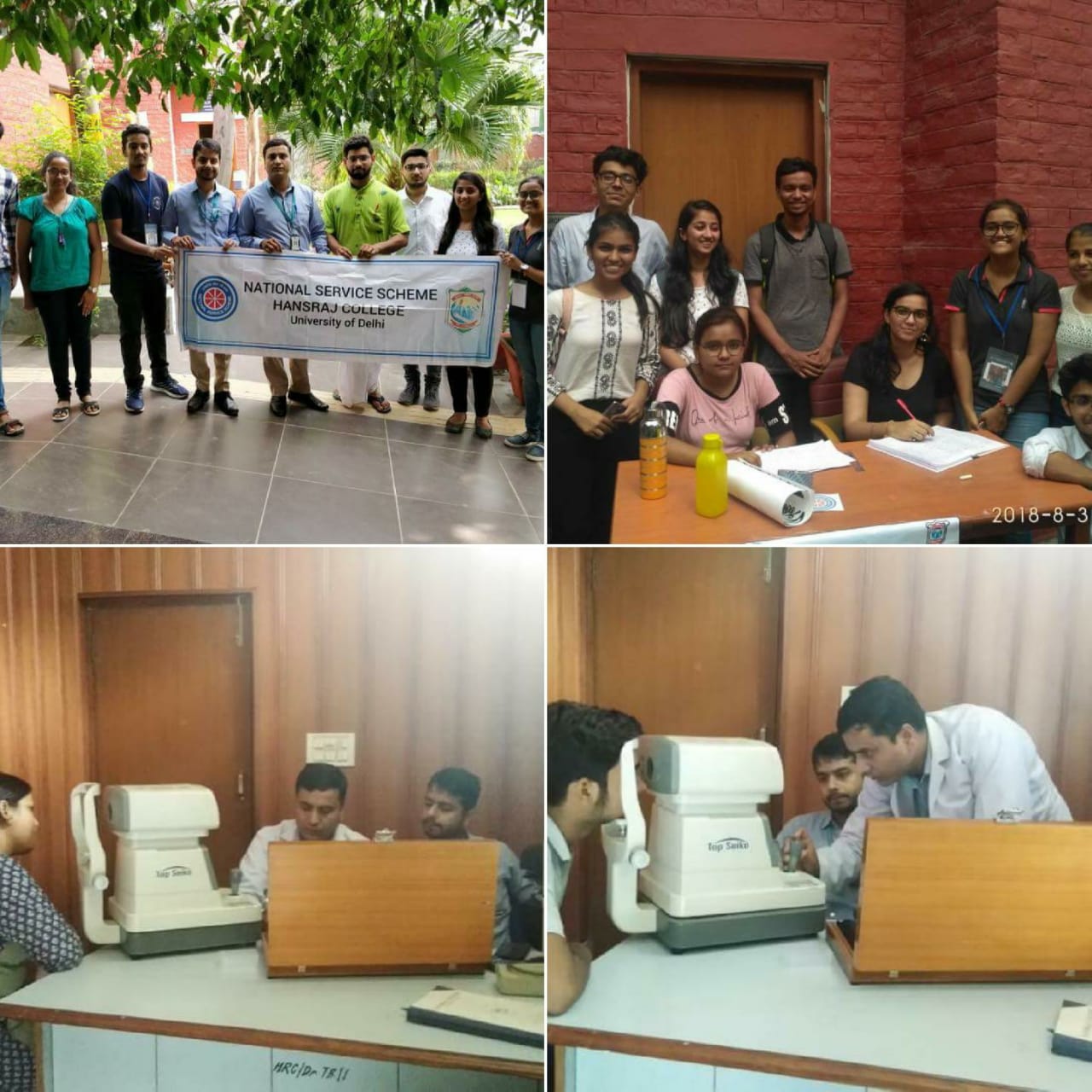 Maintaining the spirit of 'Great Vision, Greater Society', the Health wing of N.S.S. Hansraj successfully conducted a 'Free Eye Checkup Camp' in collaboration with Titan Eye+ on 31st August, 2018. The event was held in the Health Room of the college. The camp started at 10:00 A.M. and was concluded by 4:00 P.M. A huge multitude of students, teachers and non-teaching staff of the Hansraj College showed up for the event. The benefit of the camp was extended to kids from Padhaku as well. The camp successfully concluded with 188 registrations done throughout the day. This effort received an open-mouthed praise from all the beneficiaries. We are extremely grateful for the wholehearted cooperation by the Titan Eye+ team, and our dedicated volunteers.