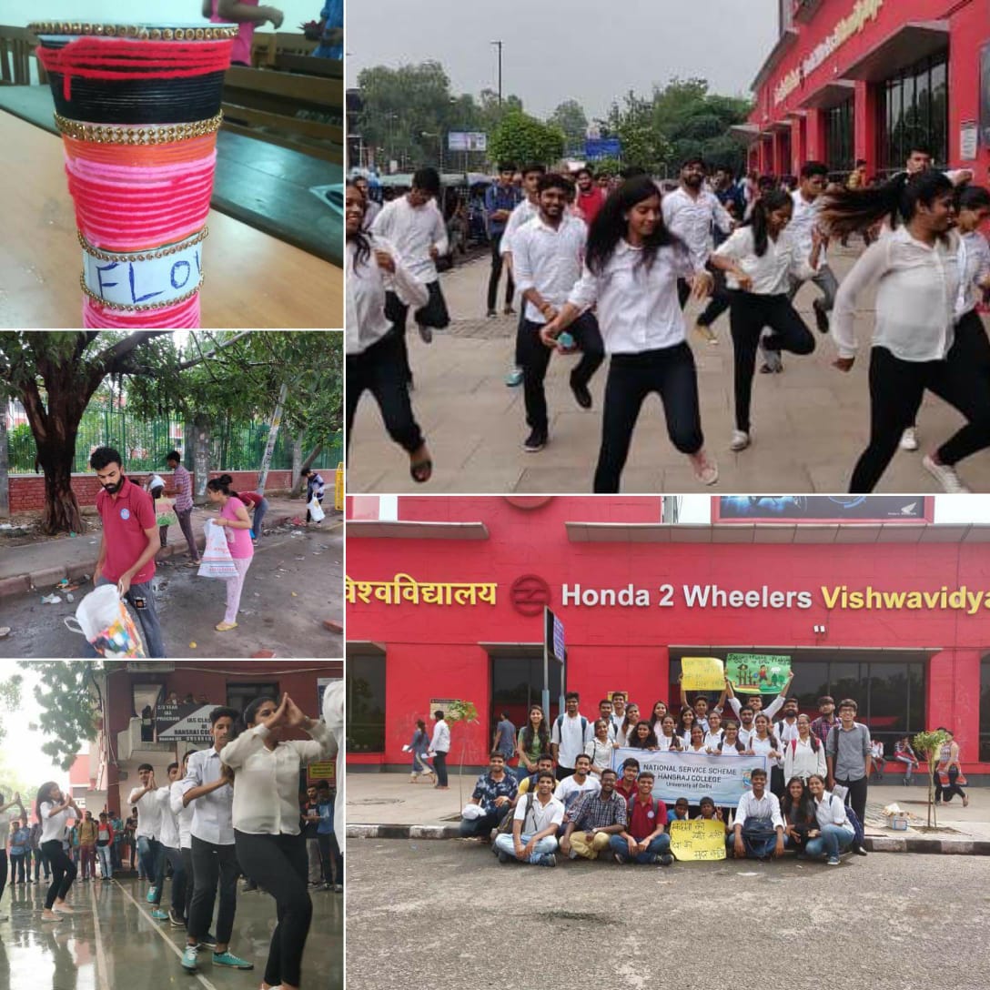 NSS Hansraj commemorated NSS Day to mark the celebrations of the inherent values of our eternal goal! A Flash Mob was conducted on Plastic Waste Prevention, in College Campus as well as at the Vishvavidyalaya Metro Station. The enthusiastic participants sensitised people by holding the spectators spellbound by their stunning way of spreading awareness. Moreover, a 'Best Out of Waste' competition was organised in which the creative volunteers created beautiful artefacts out of waste, transforming trash articles like plastic bottles, cups etc to some very useful commodities. Also, a 'Plogging Drive', an activity wherein trash is collected alongside jogging, was organised in which the hard-working volunteers gathered at the college gate before the commencement of classes and cleaned the surrounding area. It was a very enthusiastic effort as the volunteers worked very tirelessly. We would like to convey our thanks to the volunteers for their enthusiastic support!