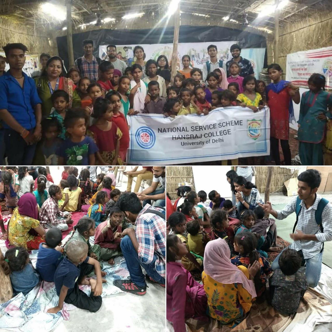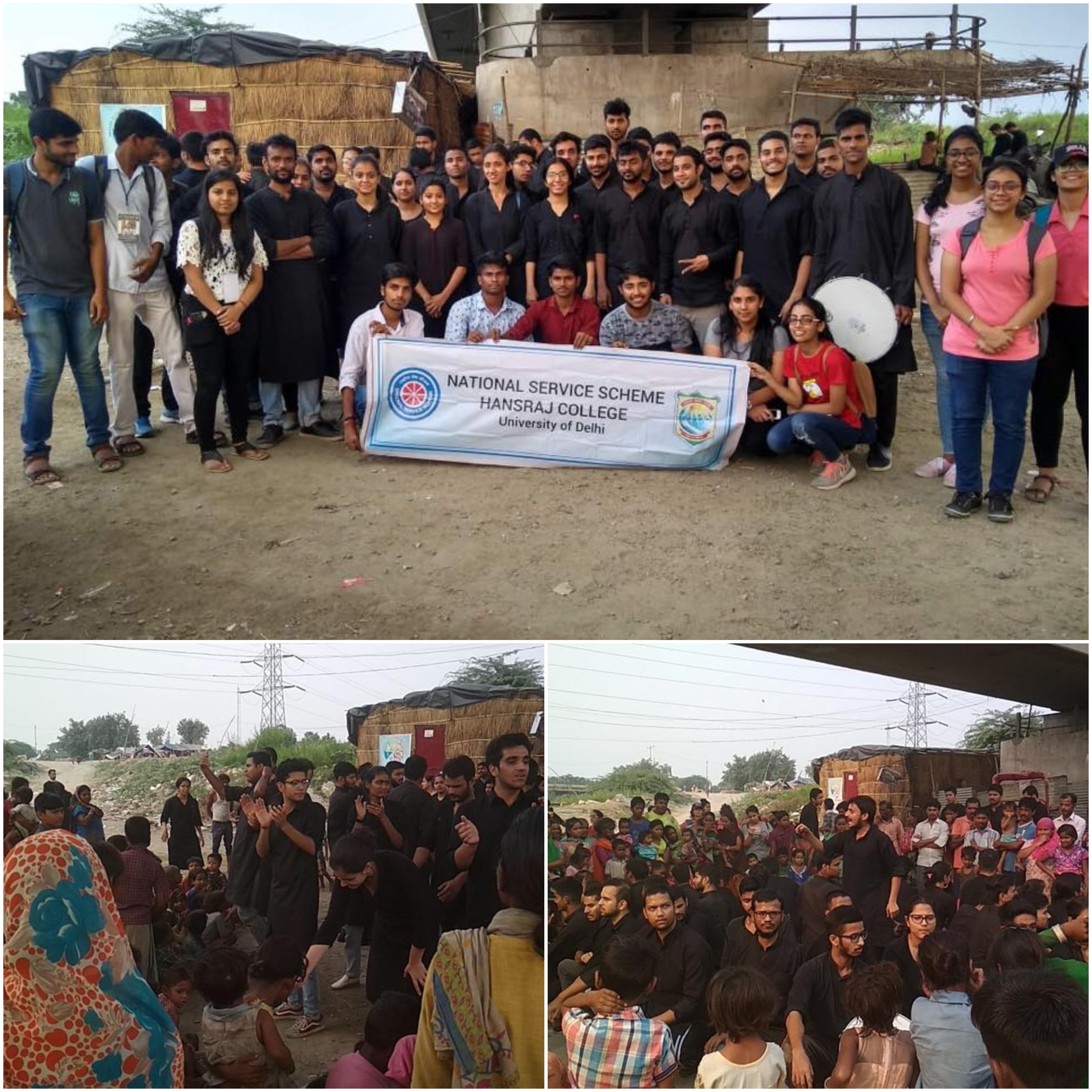 Underlining the spirit of 'service before self', N.S.S. Hansraj visited the Yamuna Khadar slum on 18th August 2018. Attended by the volunteers and coordinators of the Rural Development Wing and Environment and Disaster Management Wing alike, N.S.S. took up the responsibility to make the masses aware about hygiene, sanitation as well as the crucial importance of being socially and economically self dependent. We volunteered to showcase some inspiring videos to the women residing in the slum, to make them realise their true capabilities. The event was followed by another video-session wherein kids were made to realise the importance of hygiene and sanitation. Brought about through some fun and interactive videos, they were encouraged to keep themselves clean and wash their hands frequently. To culminate the session, a tree plantation drive was organised, wherein plant saplings were distributed to the masses, with an aim to increase the green cover around the slum, hereby marking it with bliss. We, at N.S.S., take great pride in reaching out to our less privileged brothers and sisters in the slum. The smiles on faces of the kids keep reminding us of the blessings that we garner for the rest of our lives. We would like to extend our heartfelt gratitude to the N.G.O., 'God Gives Everything' for the collaborative efforts.