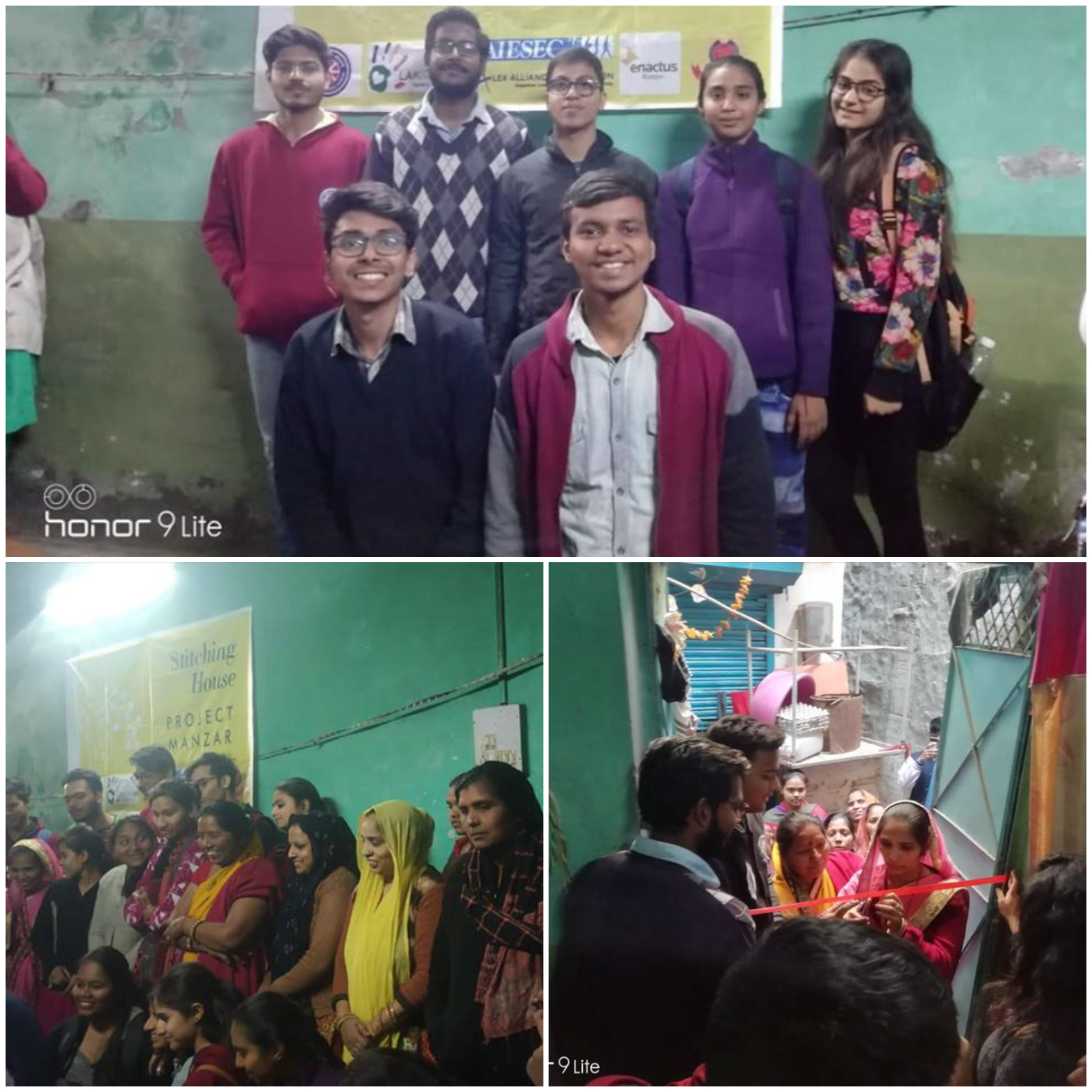 The Social Entrepreneurship Wing inaugurated its stitching camp at Anand Parbat in collaboration with Enactus Ramjas lately, namely Project Manzar. The occasion was joyous, as the wing strives to make it a successful attempt towards improving the social and economic status of women living in the neighbourhood. NSS Hansraj aims at helping the unprivileged poor ladies by employing them to sew bags for which all the raw materials along with sewing machines are provided by the organizers. Neighbourhood women collect at the workplace in their allotted day hours and sew bags and get paid accordingly. All the profit that is earned on selling those bags is used for the betterment of these women. NSS endeavours to remove poverty by making these women self-reliant so they can work and earn for themselves through the move; hence making society a better place to live for all.