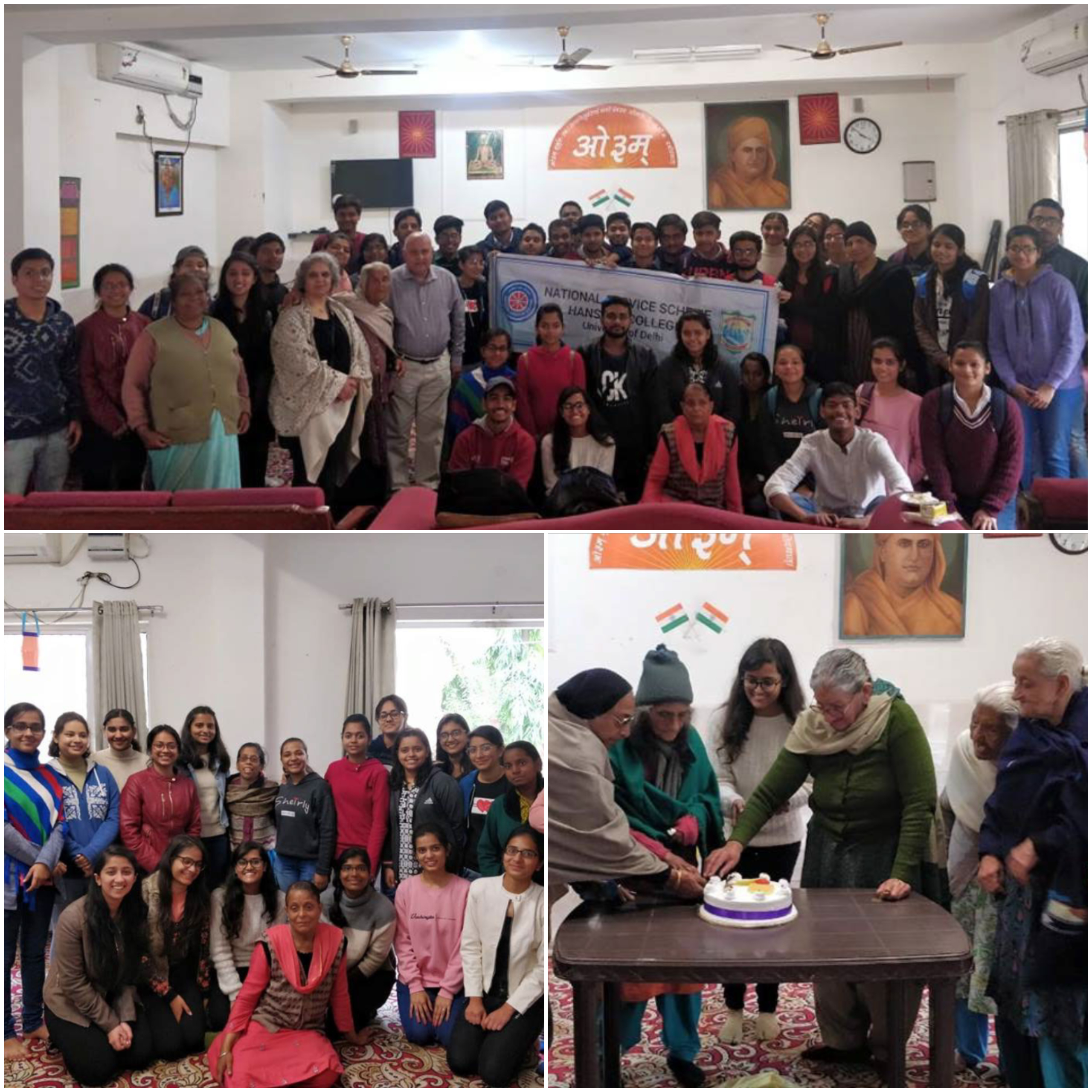 NSS Hansraj organised a visit to Arya Mahila Vridh Ashram, an old age home for women to mark the concluding day of Love Week 2019, with much love and gratitude. It started with an interactive session with the residents both on an emotional and overwhelming note. There were dance sessions and a relieving game of Antakshari which brought in a diverse taste of joy to one and all. The members also arranged cake cutting to add in a little more happiness to the lives of these wonderful Ladies, shouldering the burdens of life but never forgetting to rejoice its blessings! Refreshments and photographs ended the visit but never-ending and eternal were the memories and stories, that every member brought back!
