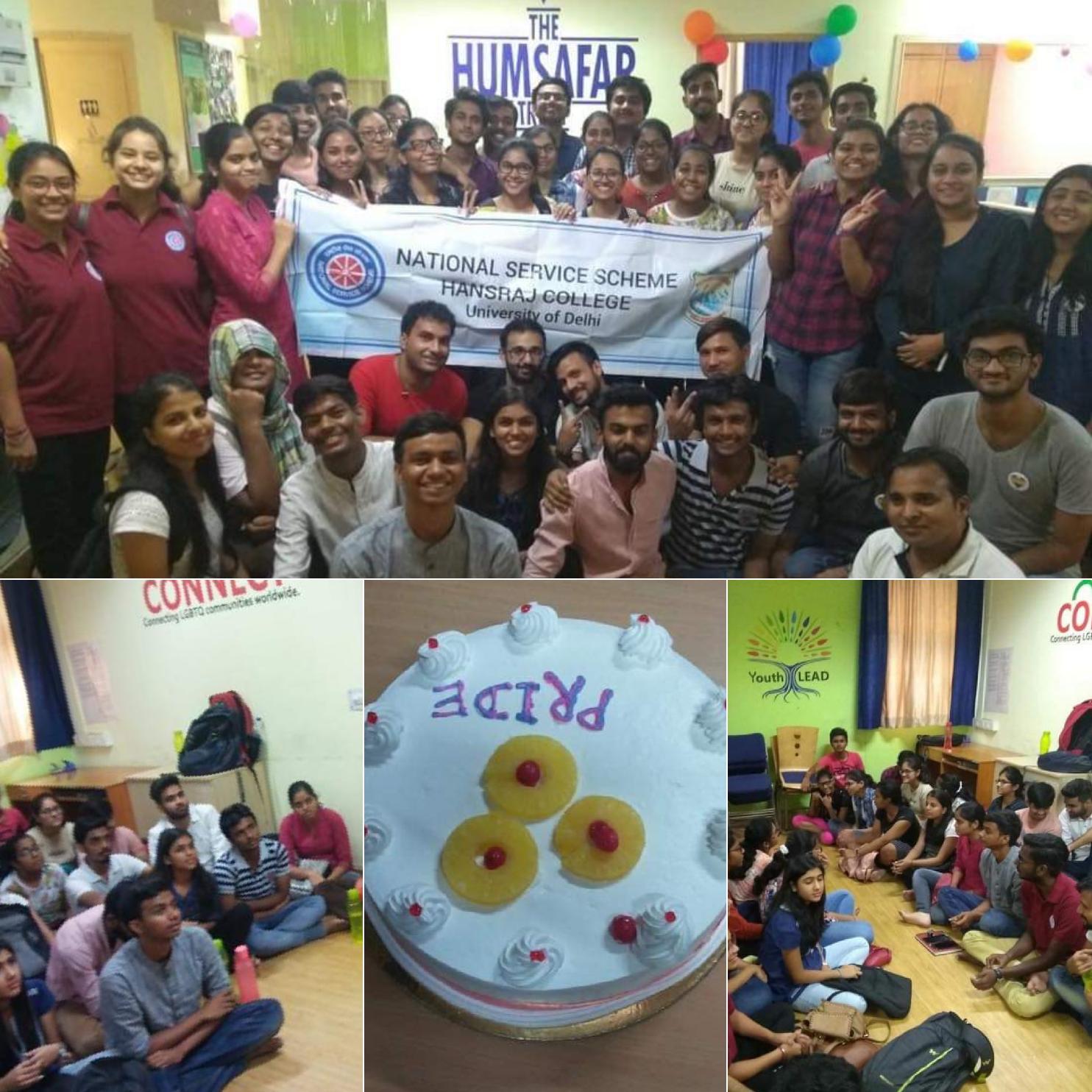 Embarking upon the legacy of the 'Joy of Giving' Week, NSS Hansraj felt ecstatic to visit 'Humsafar Trust', an organisation working for the rights of the LGBTQ+ community. The visit started off with discussions regarding the Section 377 and how the conservative Colonial Law had been such a threat to the dignity of the LGBTQ+ before its decriminalisation lately, which was followed by discussions about HIV-AIDS. To make the event fun-filled, the volunteers relished to play Pictionary and Antakshari with the members of the community. A token of love, in the form of a rainbow coloured heart badge, was also gifted to the Trust. The visit came to its culmination with the cutting of the cake to commemorate the decriminalisation of Section 377. Thanks are due to the Humsafar Trust and our enthusiastic volunteers!