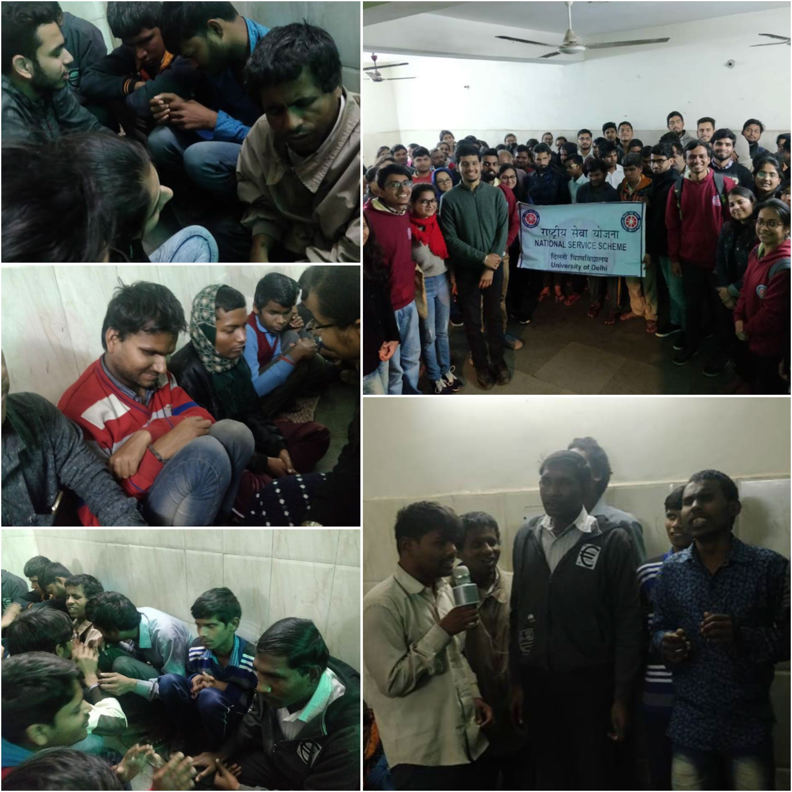Cold days, warm hearts and charitable hands when together, bring the sweetest smiles on innocent faces. NSS Hansraj is overwhelmed with the feeling of 'sukoon' as we organized a winter clothes collection drive in the college and were imbursed with loads of love and woollens from students and staff members, who contributed to this noble deed with all their hearts. The flight of happiness and 'sukoon' took off on 26th November, 11:00 P.M. on the streets of Barfkhana, Ghantaghar, Shaktinagar Chowk and Vijay Nagar when the collected clothes, blankets, jackets and other woollen stuff was donated to our brothers and sisters on the streets without proper resources to keep them warm in cold nights. The warmth of the smiles of our peers on the streets filled us with immense energy and satisfaction. The most recognised proverbs that we all have been hearing since childhood that "charity begins at home" and "sharing is caring" were brought to life as we felt immersed in those emotions.