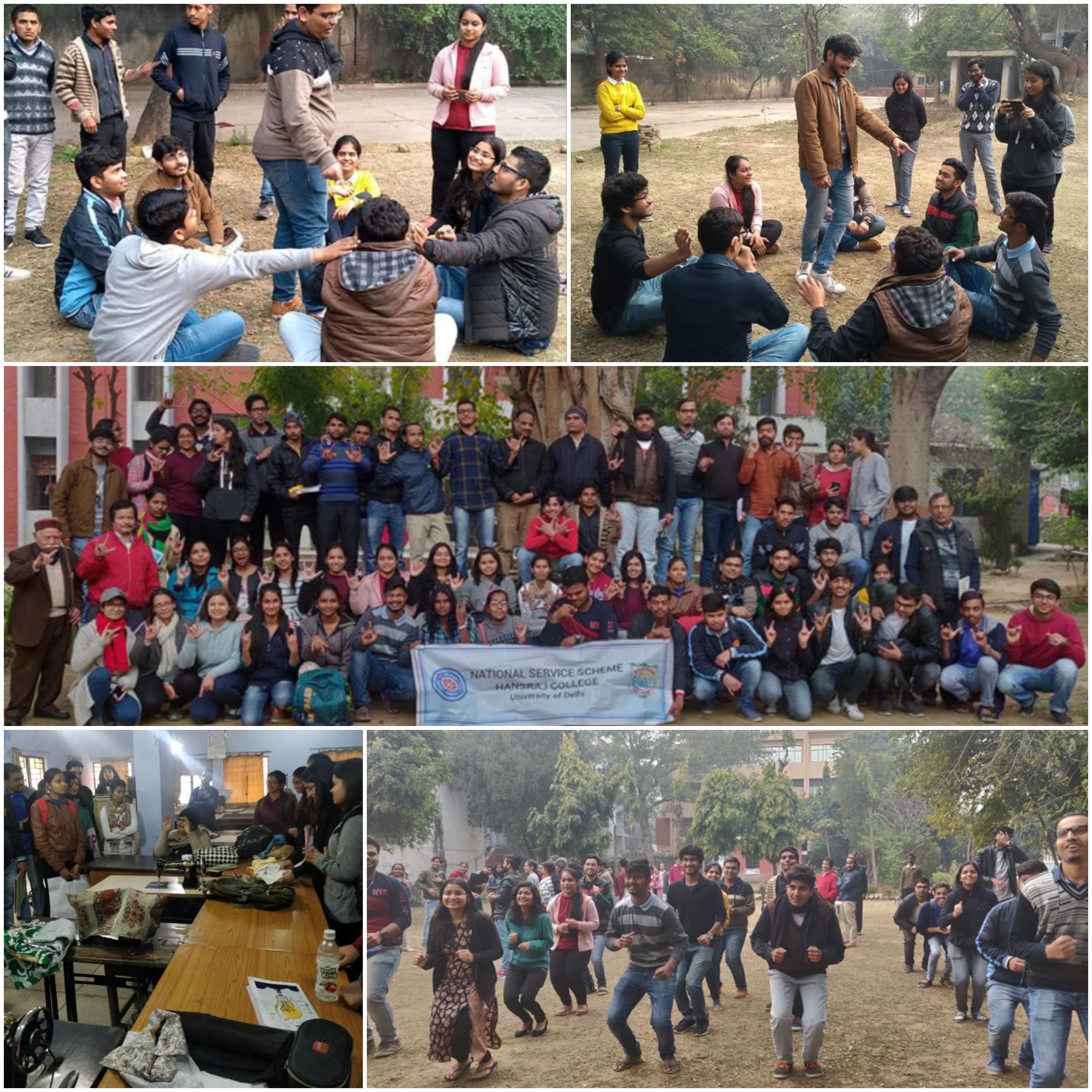 NSS Hansraj commenced the Love Week with an intimate visit to Rashtriya Prigya Drishti Sansthan, an organization that caters to look after the blind. The smiles that spread across their faces as soon as the team reached the destination was overwhelming. As the volunteers began interacting with them, we soon heard happy voices which for long had remained silent. Talents overflowed as we heard melodious voices lighting up the small antakshari that we arranged for them, which was followed up by a 'Guess the song' competition. The activities soon took a playful turn when the volunteers engaged their audiences in shayari, poems and stand up comic acts to brighten up everyone's mood. The volunteers had a wonderful time, and the feedback that we received from the blind people staying in the organisation made everyone feel glad. Thanks is due for our volunteers and the core committee of the Rashtriya Prigya Drishti Sanshthan for their enthusiasm and continuous support.