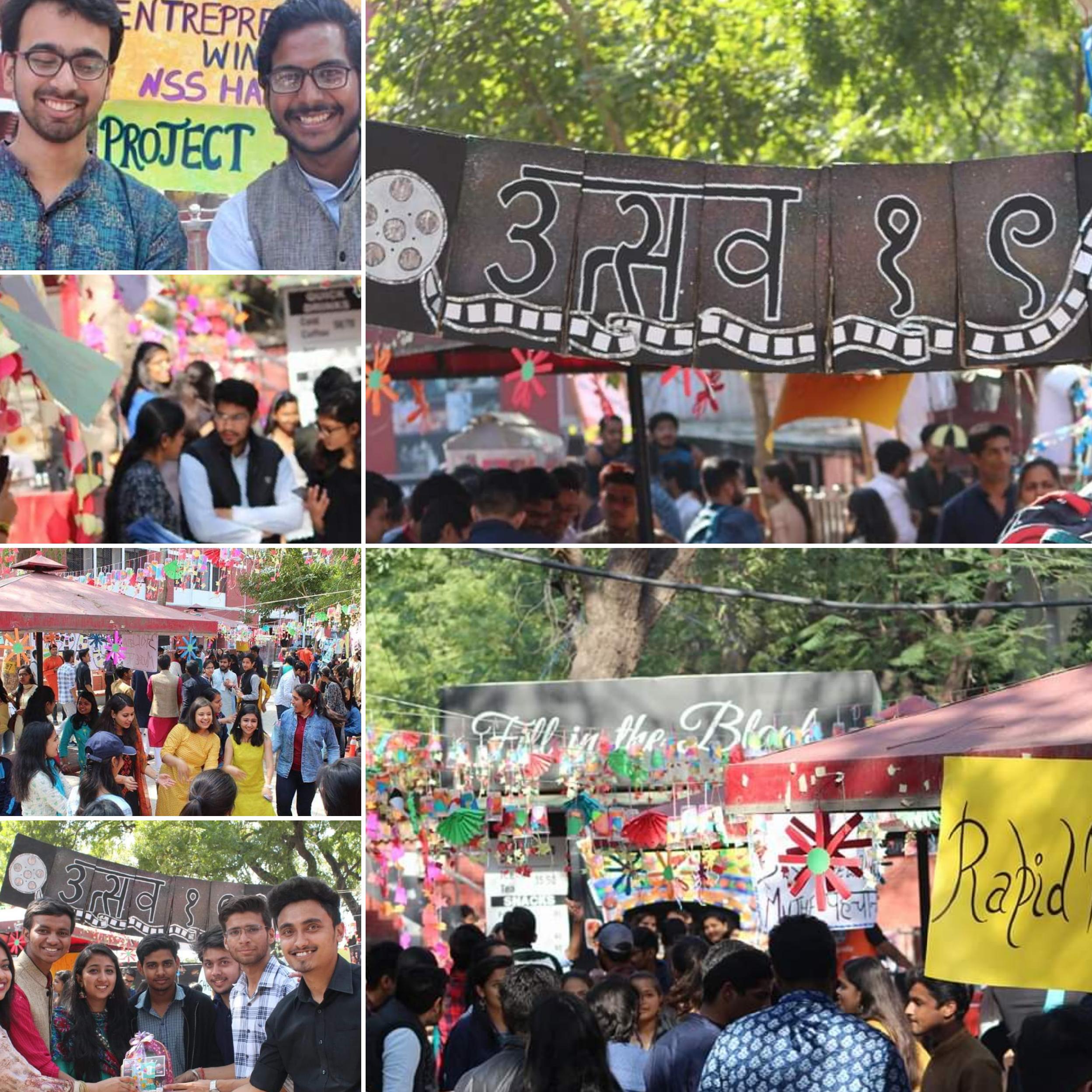 The aura of music, the shimmer of decorations, the aroma of cuisines, the delight of games and the co-operation of beautiful hearts - that's to sum up the Annual Fest UTSAV '19 of NSS Hansraj. NSS Hansraj successfully celebrated Utsav 2019 on the 9th of March. It was a steaming event, highly awaited and straight from the hearts of hard-working volunteers. As one entered the celebrations, the first ones to welcome were the vibrant paper hangings suspended elegantly over the celebration area. There was something to cater to everyone's interests - exciting Bollywood games for the game lovers, delicious Chaap for the foodies, and exquisite artworks ranging from bookmarks, posters, purses to candles for the artlovers. Also, there was a photobooth stall in the shape of a truck which served to be a key attraction of the fest. The treasure hunt saw highly enthusiastic participations. The people grooved to music in the "Let's Nacho" game stall performing the hooksteps of popular songs. Meanwhile, others expressed their views about menstruation in the Padman challenge. The games were applauded by all for how well they amalgated the fun and engaging factor with awareness of social responsibility. Moreover, there were stalls of different DU colleges namely NSS Lakshmibai, Enactus Maitreyi, CDF Motilal Nehru College and a special stall by the NSS Hansraj Jugnu team. The feedback collected from the visitors was really motivating as they praised the work of the NSS team as they got to know about the initiatives of NSS Hansraj. Finally, the whole team of NSS Hansraj would like to extend its thanks to all the visitors for showing up for the event and turning this humble initiative into a grand and admirable success. Also, without the cooperation from the volunteers, it would not have been possible to manage this event in such an efficient and effective manner. Thank you all, we hope to see you at Utsav 2020!