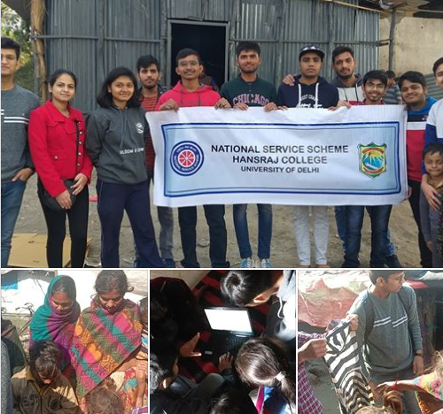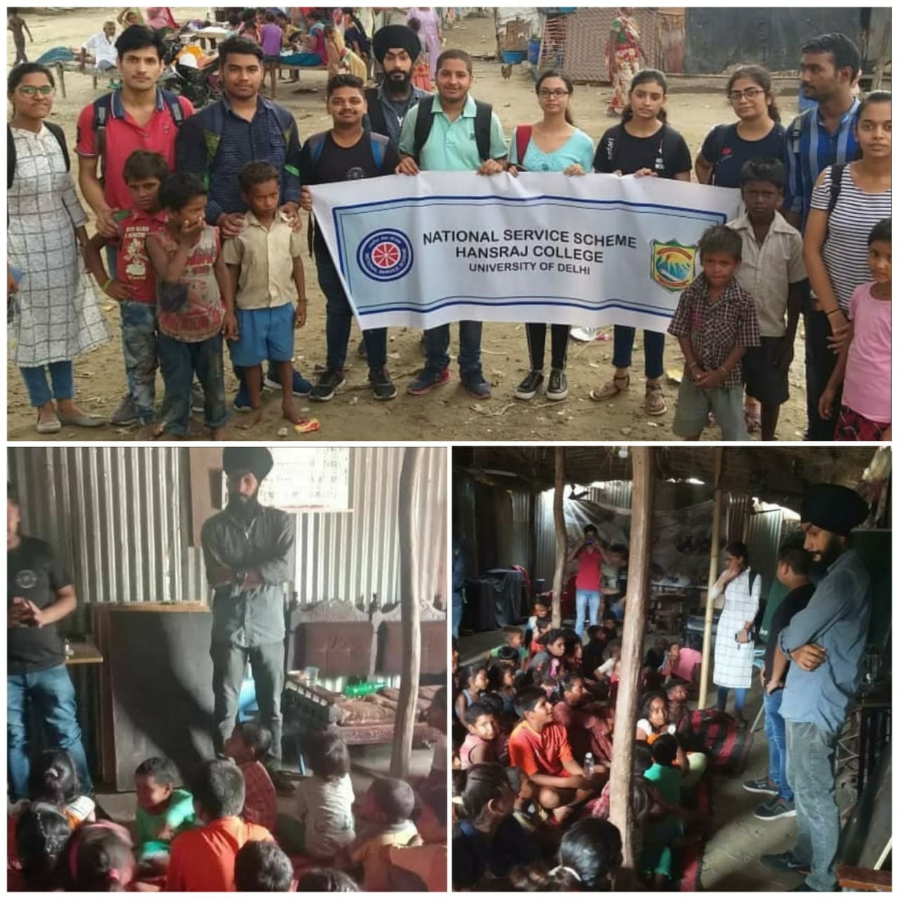 We at N.S.S. Hansraj are on a perpetual lookout for innovative measures to aid in the upliftment of the deprived strata of the society. Progressing on a similar note, the society recently conducted a Donation Drive wherein the members of the society donated clothes to the needy residents of the Yamuna Khadar slum area. The volunteers collected the clothes from the college campus that had been donated by the students on the 'Wall of Kindness' and took them to the slum wherein separate teams of volunteers targeted different sections of the slum and effectively managed the donation drive. It was a liberating experience as the beneficiaries immediately accepted the donated clothes and praised our initiative with open hearts