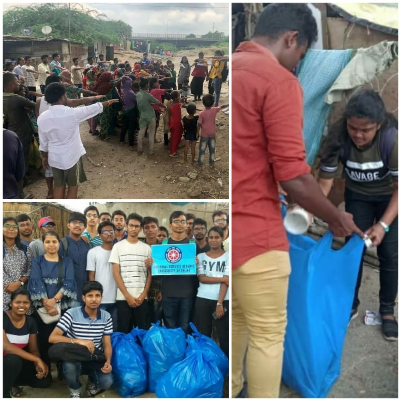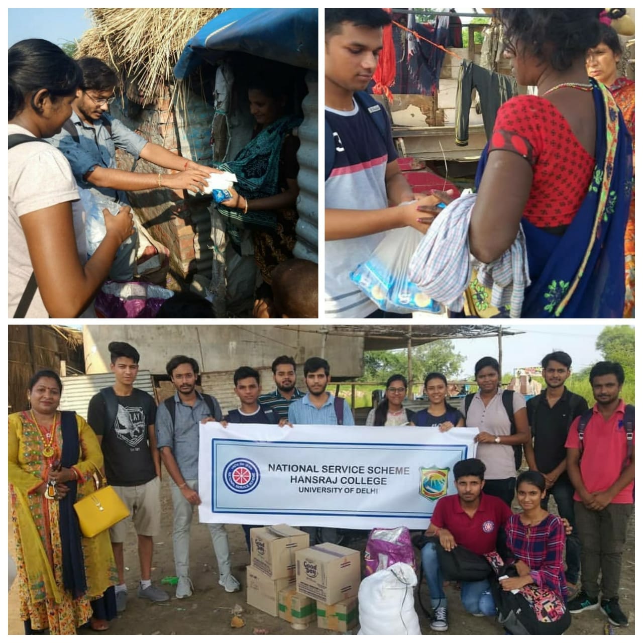 On September 2, 2019, N.S.S. Hansraj undertook yet another expedition in their service towards the society by putting forth the Flood Relief Donation Drive into action. All collectables donated by the pupils of Hansraj College over a week's time were distributed to the residents of Yamuna Khadar Slum Area. N.S.S. Hansraj announces yet another milestone achieved in the service and upliftment of the community, and extends their gratitude to all generous contributors who stacked their overflowing bags on the shelves against the Wall Of Kindness. We are extremely thankful.