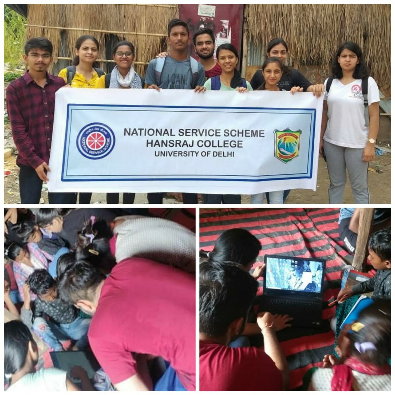 We at N.S.S. Hansraj strive to promote social well-being and try our level best to contribute towards various sectors that are of significant importance for the upliftment of the society. Hence, to promote the education of the underprivileged, N.S.S. Hansraj organised a computer literacy session on September 29, 2019 with the sole noble intention of imparting computer science education to the less privileged children of the Yamuna Khadar slum area. The students had been craving to be introduced to the world of computers but unfortunately did not possess the fortune of owning a computer. Hence, the knowledge was imparted by N.S.S. volunteers using laptops. The volunteers started their program by giving practical experience, which included MS Paint, Word, Excel, and PowerPoint. The main emphasis was to make students realise the importance of knowledge of computer systems which in turn would help them in their future. All the students listened to the volunteers with great patience and attentiveness. Thus the programme ended on a happy note and a beautiful smile was seen on the faces of the beneficiaries.