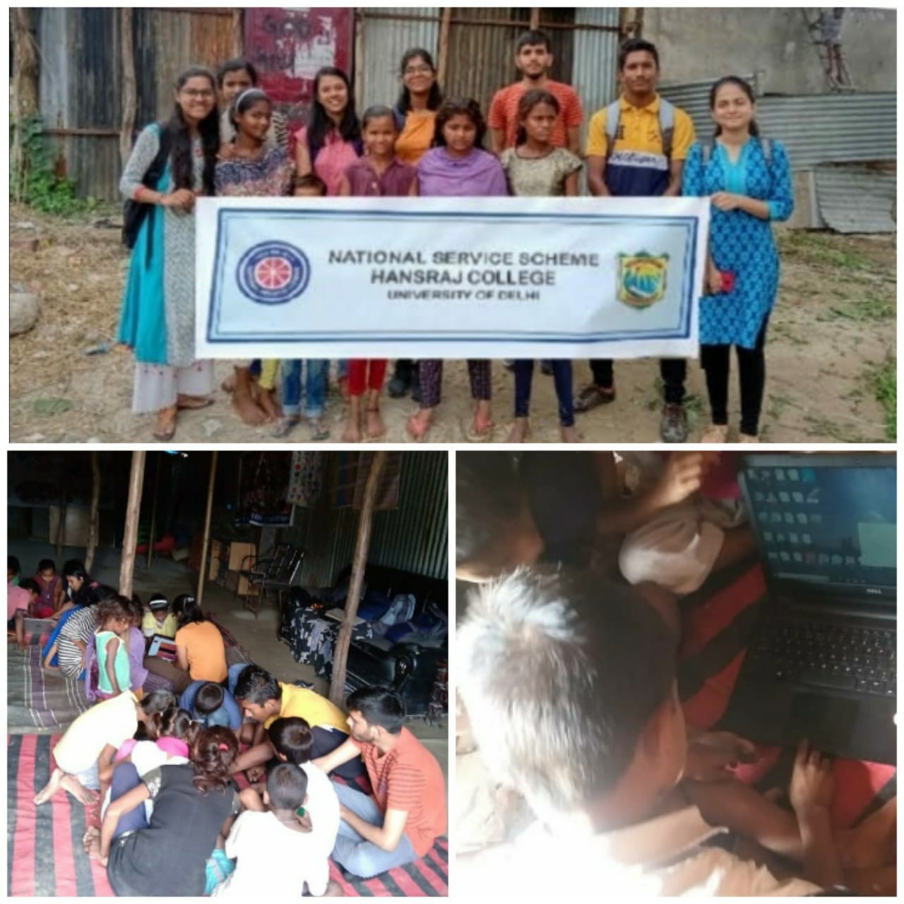 N.S.S. Hansraj conducted a session on computer literacy in the Yamuna Khadar Slum area to empower the kids digitally. With the elementary use of a computer to learning new programmes and applications, kids were introduced to different horizons of knowledge and skills. The excitement and keenness of the kids in learning different components of a computer was pleasant to behold.