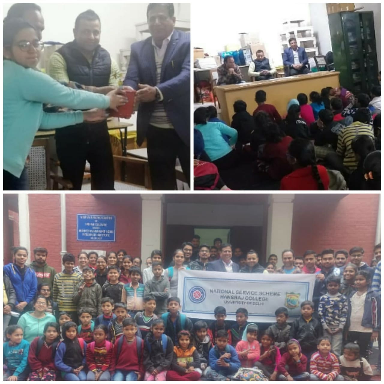 To mark the glorious beginning of 2020, N.S.S. Hansraj undertook a 'WINTER DONATION DRIVE' held on January 05, 2019, to accumulate the generosity into woollen clothes in this unforgiving environment, and distribute them to the people of the Yamuna Khadar Slum area. It was continued with a session on 'Computer Literacy', the programme earlier set into motion by the team of NSS themselves. With beaming smiles and glowing faces, the event was overall an overwhelming success.