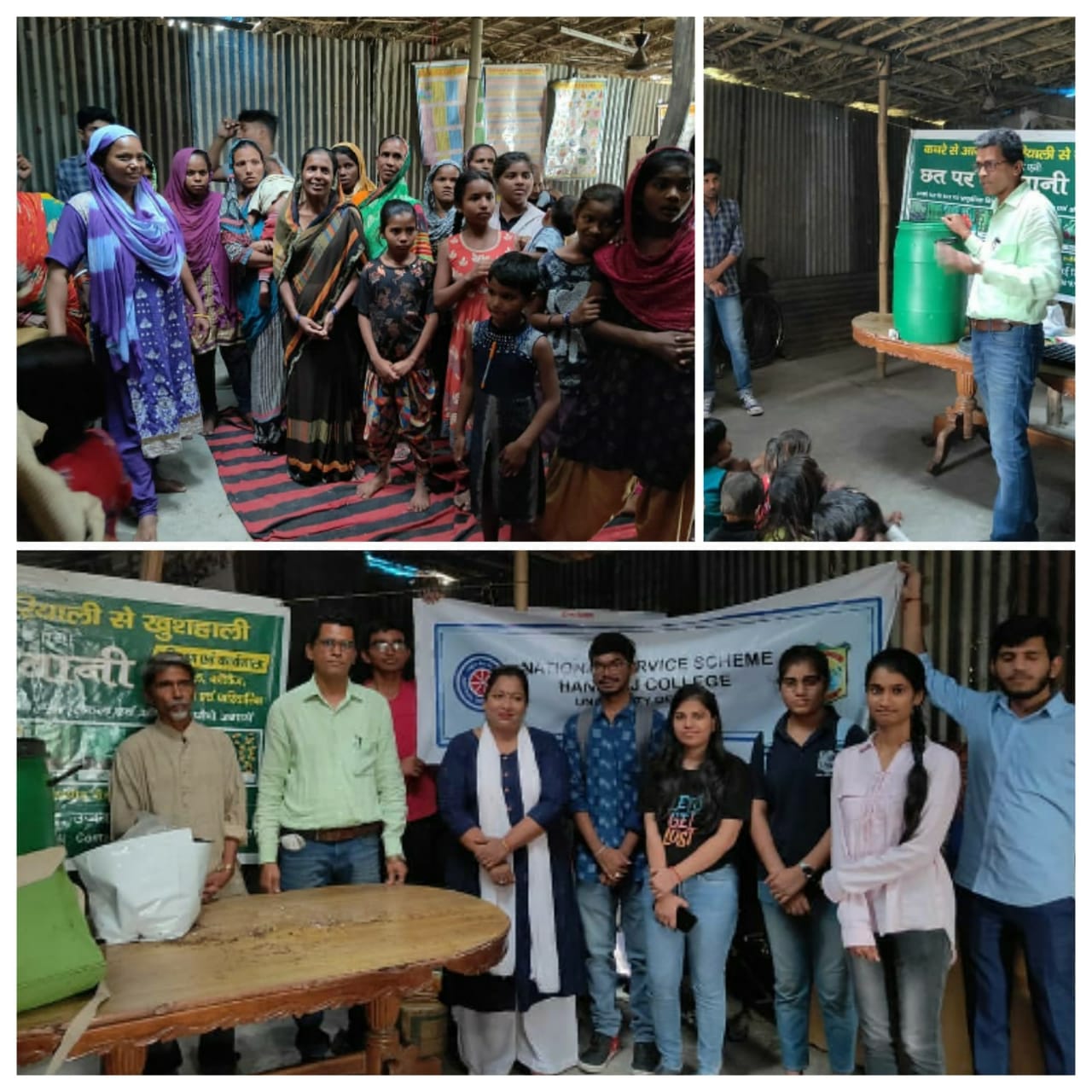 Garbage and litter have become a vexing problem for all human habitations all over the world. However, with better management, technology and scientific knowledge, we can tackle this issue. One of the sustainable and economically viable approaches is converting the biodegradable waste to manure. Motivated by the same thought, we at N.S.S. Hansraj hosted a workshop on "Manure from Waste" on 30 October, 2019 for the people of the Yamuna Khadar slum area. Mr. Praveen Mishra from 'Chatt Par Bhagwani Group' chaired the session. This workshop aimed to make the people of the slum aware of the techniques of converting their household waste into manure and the benefits therein. The programme concluded successfully and proved to be beneficial for all.