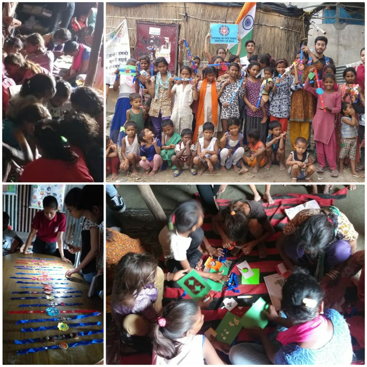 We at N.S.S. Hansraj always try to find novel innovative ways to support the all-round holistic development of the deprived sections of the society. Progressing further with this spirit, a Rakhi Making Competition was organised in the Yamuna Khadar slum area on August 14, 2019 to promote creativity in the children of that community. We witnessed a phenomenal participation from the high-spirited children of the slum. The prizes distributed for the first, second and third positions served as a great motivation for the contestants. The event was concluded with an oath about Independence Day and a beautiful recitation of the National Anthem. The event was overall an overwhelming experience for all the volunteers.