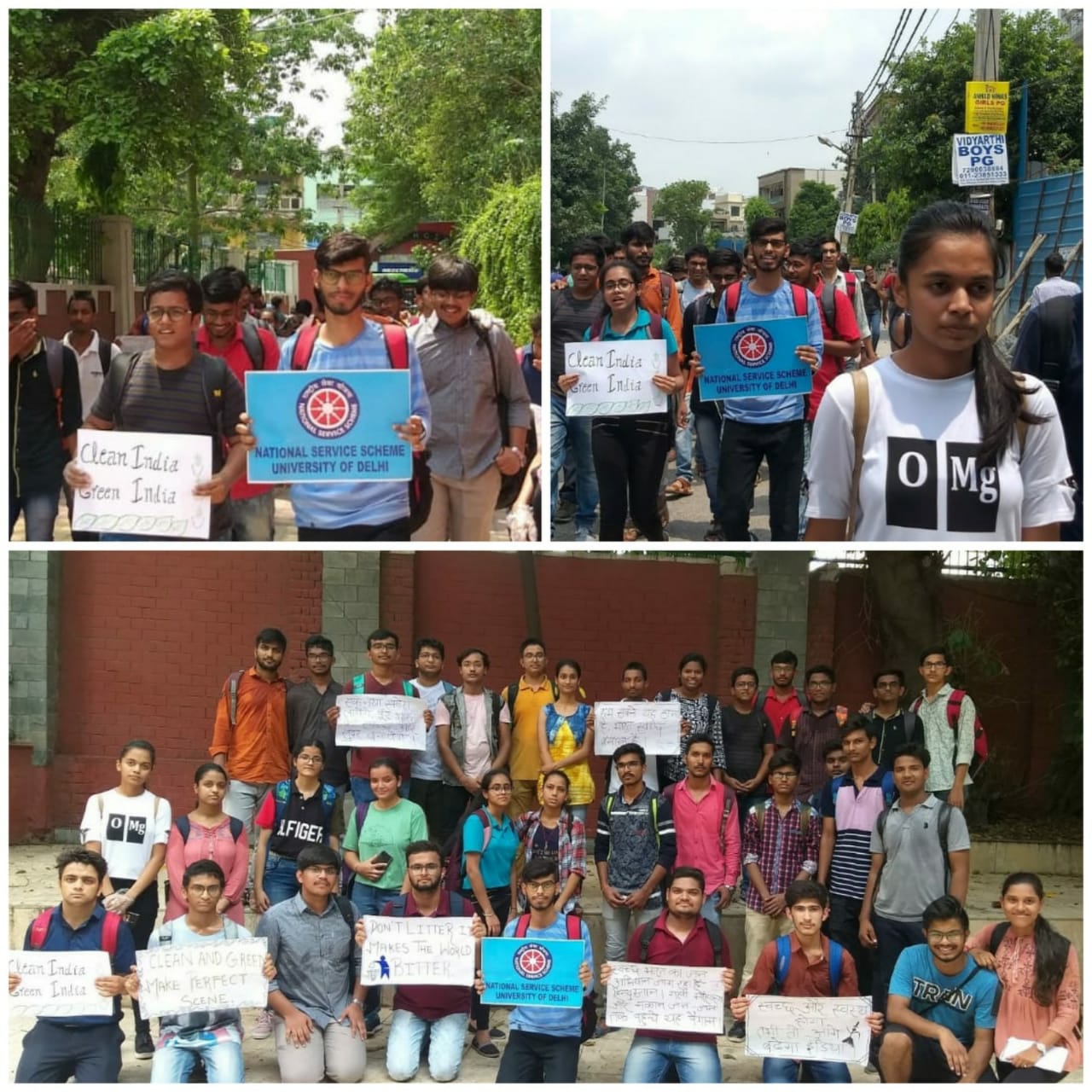 Rallies serve as an impactful device to emblematise issues of social interest and their wide approach caters to an extensive audience. Hence, to rouse interests of general public in the field, N.S.S. Hansraj organised a 'Cleanliness Rally' in the Malkaganj area on August 13, 2019, an initiative taken under the Swachhta Pakhwada. A motivated team of volunteers marched out of the College campus with banners on cleanliness, raising enthusiastic slogans to motivate people. After extensively covering the Malkaganj area, the students re-entered the college through the Hostel Gate. The event was overall a very inspiring initiative and was open heartedly praised by the onlookers.
