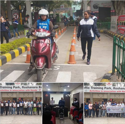 Keeping in view a large number of road accidents, N.S.S. Hansraj organised a session on road safety on 27th January in collaboration with Honda India Pvt. Ltd. and Delhi traffic police. The session was organised in the traffic training park, Roshanhara Bagh. The session involved both perceptual and practical learning. The students were taught adequate driving postures, skills and traffic rules by means of various drills. Statistical data, indicating a high frequency of road accidents over the years, was also shared. Refreshments and certificates of participation were also provided.