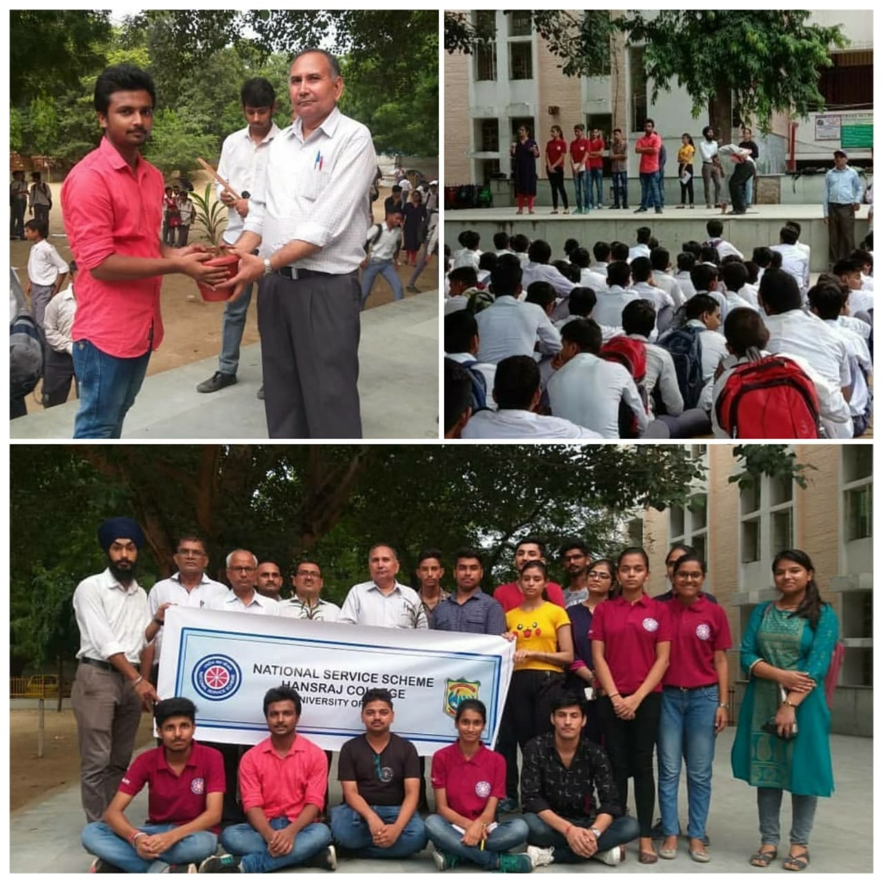 Schools are a great place to influence young minds and create a lasting impact on them. Hence, to create awareness regarding Cleanliness and Sanitation, and to cater to the present young generation's need of such necessary information, N.S.S. Hansraj organised an interactive session for the students of Government Senior Secondary School, Roopnagar under the Swachhta Pakhwada. The students firstly took an oath to maintain cleanliness. This was followed by an informative lecture by the N.S.S. Volunteers on 'Cleanliness and Personal Hygiene'. Also, the sweepers of the school were felicitated with potted plants to recognise their contribution towards keeping the school campus clean. The event was overall an informative and motivational one.