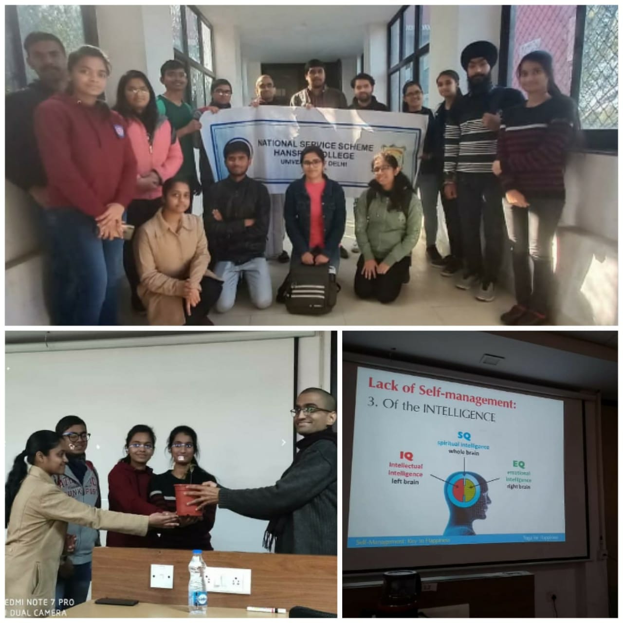 In the monotony of daily life, where one often forgets to pay attention to self, N.S.S. Hansraj, in collaboration with Akshya Patra organised a session addressing the issue of Self Management. The purpose of the session was to help those who lack the skills to address personal issues and sort out trivialities. The speakers stressed upon the fact that self-management was about preparing for the future, owning the present and taking care of what to do – as well as learning how one could do better next time. The students were made aware of the importance of self-management to grow as a person. The session turned out to be highly informative for all attendees.