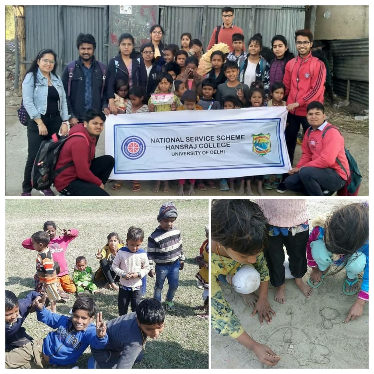The "Love Week 2020" of N.S.S. Hansraj finally reached its conclusion as we celebrated the last day of this mega-event at the Yamuna Khadar slum area. Yamuna Khadar is a slum adopted by N.S.S. Hansraj and we regularly conduct various charitable activities at the place. Hence, to spread love among the residents of the slum and promote social well-being, a team of our volunteers visited the area and interacted with the residents there on February 14, 2020. Games for children and other exciting activities for other residents were organised and the volunteers participated along with the residents of the slum to share a sense of community and love. The event concluded with the distribution of sweets among the residents. With this, we successfully completed another heartwarming version of the "Love Week".