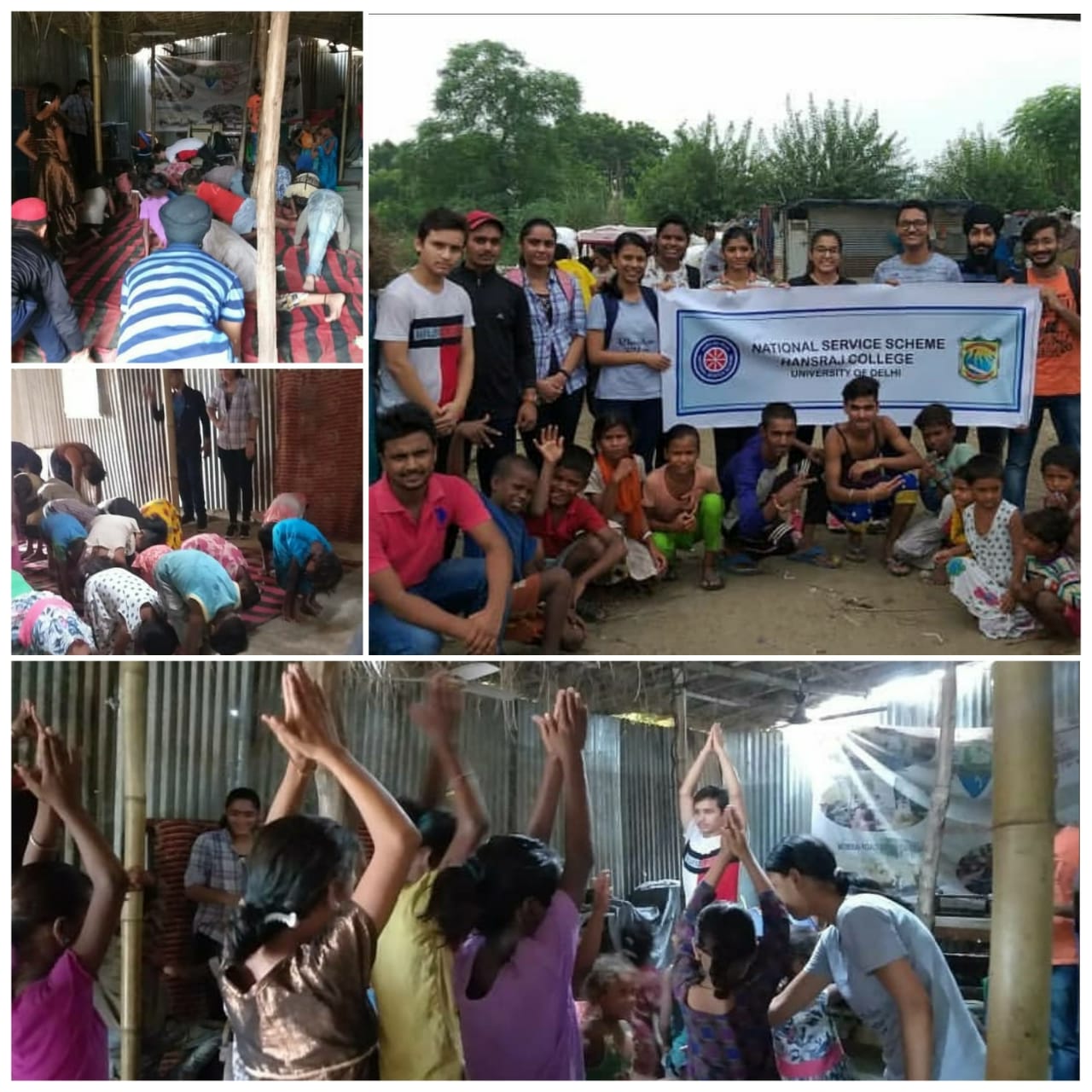 N.S.S. Hansraj organised a Yoga Session in the Yamuna Khadar Slum Area on 2nd February to educate the slum residents regarding yoga, it's benefits and to help them inculcate it in their daily lives. It was followed by a session on Computer Literacy, the programme earlier set it into motion by N.S.S. Hansraj, to impart computer knowledge to the children of the slum.
