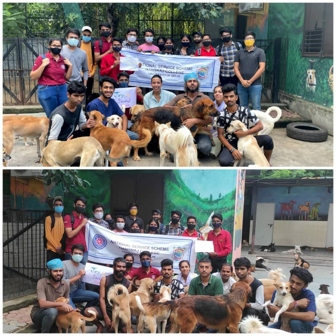 NSS Hansraj successfully organized a cleanliness drive on the 4th of October at Neighborhood Woof Timarpur Kennels as a part of 'Joy of Giving Week 2021'. Our zealous volunteers worked hard in ensuring that the entire place was disinfected and clean for our furry friends. Our volunteers also had a productive heartfelt discussion with the proprietor of the shelter as they all took a moment to appreciate the acumen and insights of how blessed we are with the diversity of fauna existing amidst us. They were also briefed on why the sterilization process is essential to keep the canine population under control. The rescue stories of some dogs were beyond motivating and our volunteers had a thrilling and delightful time as they played with the affectionate and friendly dogs.