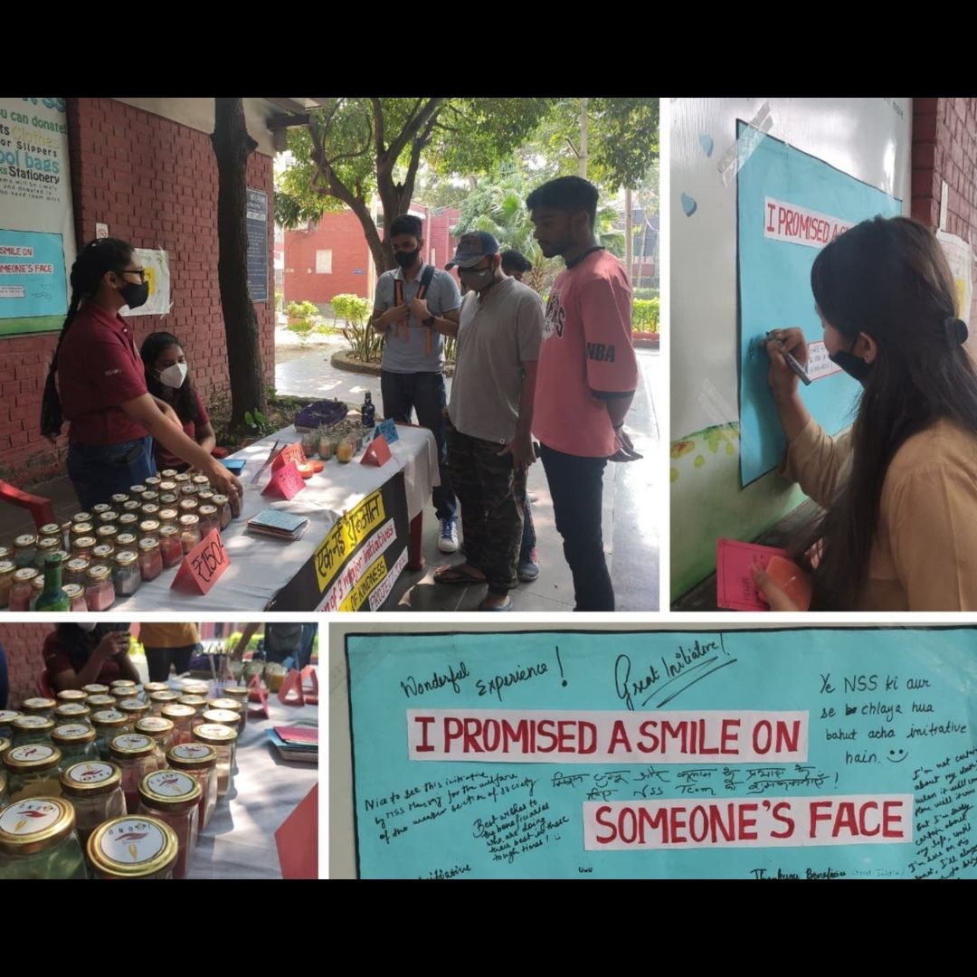 On the second day of 'Joy of Giving Week 2021', we at NSS Hansraj pledged to recommence our three signature initiatives, Wall of Kindness, Project Kalam, and Project Jugnu under 'Ek Nayi Shuruat'. On behalf of this, a contribution drive was held on 5th October 2021 wherein college students, teachers, and staff enthusiastically participated and contributed their bit by rendering out valuable donations to the Wall of Kindness. Furthermore, the team set up stalls for Project Jugnu and Project Kalam where eco-friendly pens alongside candles produced from recycled wax were put up for sale. The visitors to our stalls were appreciative of our efforts and made their purchases with keen delight. We were fortunate to receive their insightful and encouraging feedback which motivated us to keep up our sterling efforts. The entire price amount and donations received would be gifted to the women beneficiaries of our esteemed projects who have been hard hit by the pandemic and the needy out there respectively. Let's together continue to spread kindness in whatever little way possible!