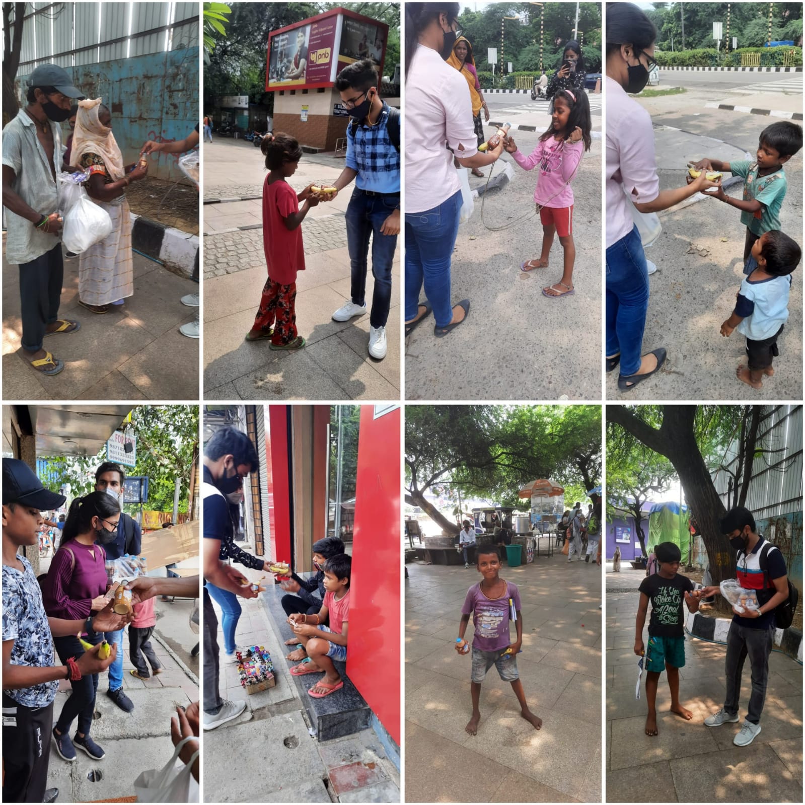 It is rightly said that giving is not just making a donation rather about making a difference. Keeping this in mind, NSS Hansraj successfully conducted a food donation drive near the metro station and roads of Kamla Nagar on 6th September 2021 on the account of Nutrition week, observed every year from 1st September to 7th September. The food donation drive was conducted especially for the children, taking into consideration this year's Nutrition Week's theme, 'Feeding smart right from the start'. Thereby, we distributed bananas and amul flavoured milk bottles to the children. It was surreal seeing magical smiles on the faces of innocent kinds. We can’t feed a hundred alone but can definitely feed them in unity.