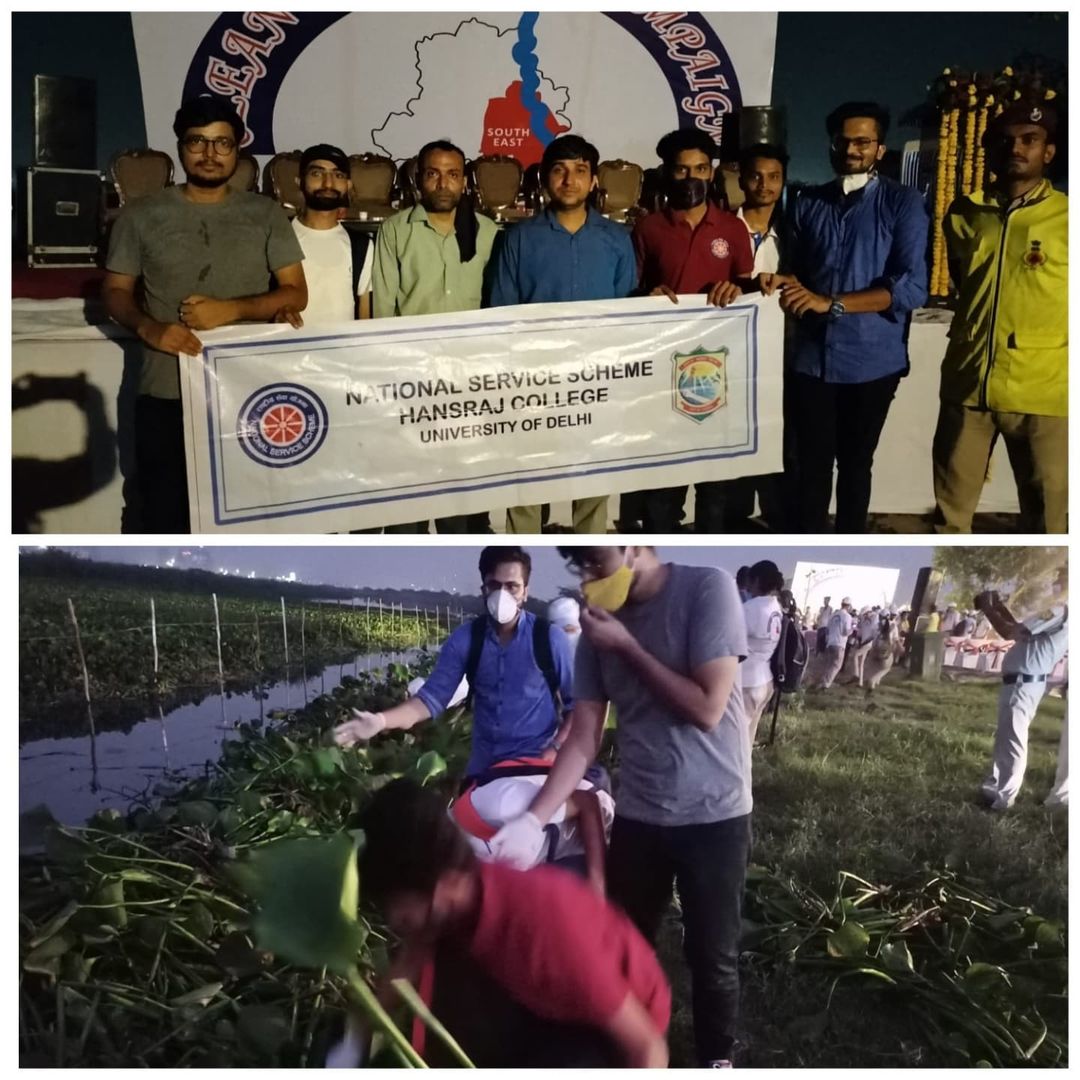 NSS Hansraj got the golden opportunity to participate in the cleanliness drive and inauguration of Clean Yamuna Bank in the SouthEast district of Delhi. The campaign was flagged off by the honourable Chief Guest Mr. Rajendra Singh, popularly venerated as the 'Waterman of India'. More than a thousand volunteers were engaged in it from all across Delhi. They even volunteered in picking up the waste from the Yamuna river and its banks. Moreover, five zealous volunteers of NSS Hansraj came forward for this drive and contributed to fulfilling their responsibility towards the environment. The perpetual participation of NSS Hansraj in such events evince our endeavors to initiate positive changes in the environment and spread the word on such issues. NSS Hansraj under its Environment & Disaster Management and Health Wing takes initiatives at its own level to embrace the sanitation condition in the country by recognizing its unsaid duty towards preserving the environment.