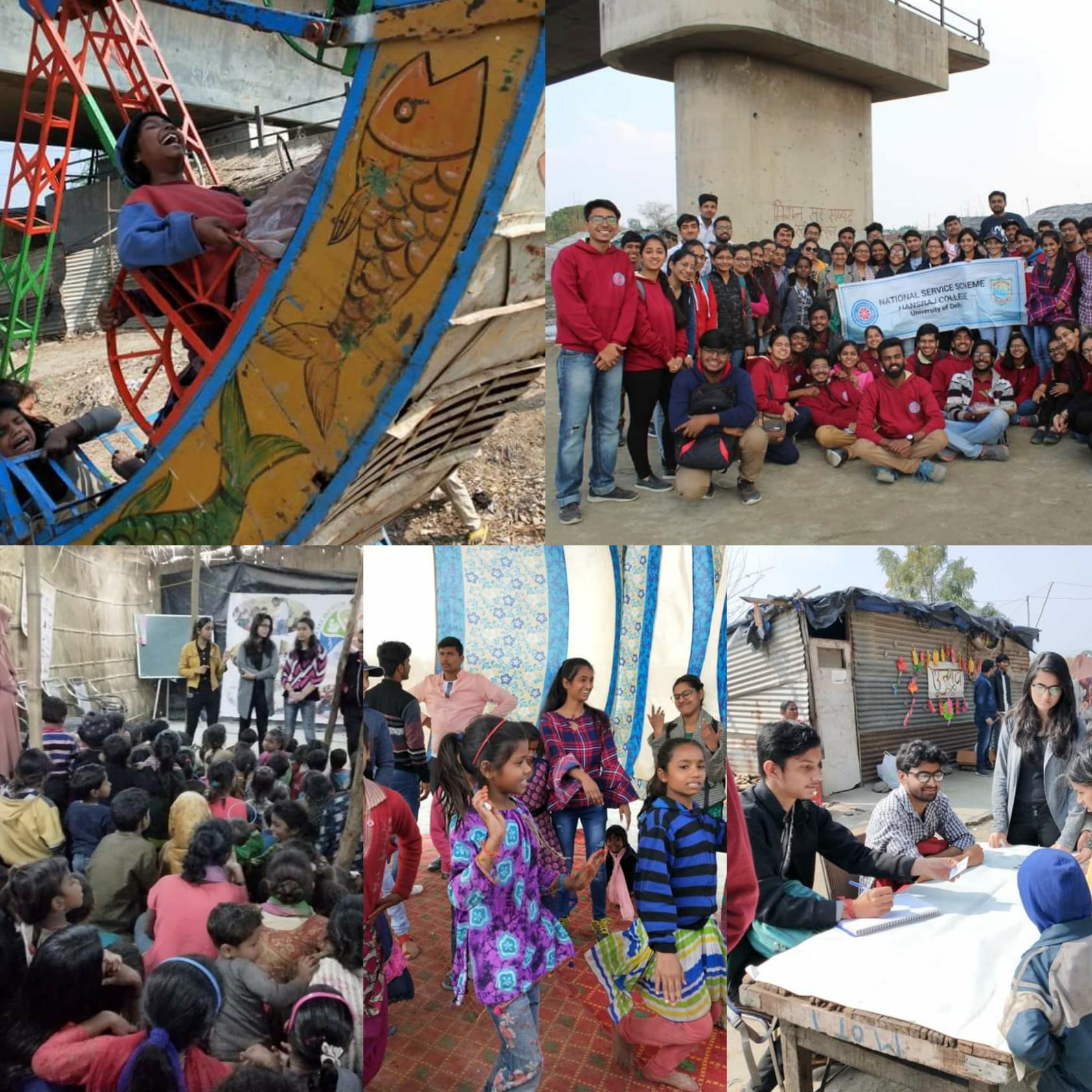 The bright sun shone in unison with the high spirits that NSS Hansraj carried - all ready to radiate the lives of our brothers and sisters at Yamuna Khadar to celebrate Utsav 2019. The day began amidst excitement as volunteers reached Yamuna Khadar around 9 A.M. to light up the day. The volunteers lit up the area with beautiful decorations and hangings. An oral hygiene awareness session was conducted for the children at the commencement followed by fun activities for them. Besides putting up a fun big 'Columbus' ride, we began with the races for our kids. Quite vibrant with the energies that they hold, we saw amazing participation in tyre race and sprint race. The winners were appreciated with lovely prizes. Meanwhile, the tasty gulab jamun and chole bhature began attracting the inhabitants in large numbers, garnering praises and spreading smiles on everyone's faces. As the sun came overhead, we soon began with our next set of competitions for adults starting with a stitching contest which saw enthusiastic participations and pretty frocks. The best entries were awarded for their creativity. It was followed by an awareness seminar regarding menstrual health, which was attended by a number of female inhabitants of the slum. Keeping in mind the crucial importance of hygiene and sanitation, NSS Hansraj also organised cleanliness and personal hygiene contests, and the top three cleanest houses were acclaimed with prizes. The event concluded by a plant sapling donation drive, wherein we inspired people to increase green cover around their house. It was followed by the final discussion with the volunteers regarding their experience and the positivity that they encountered spreading smiles and happiness. We would like to extend our heartfelt gratitude to our volunteers for their dedicated efforts which helped us make this event a great success.
