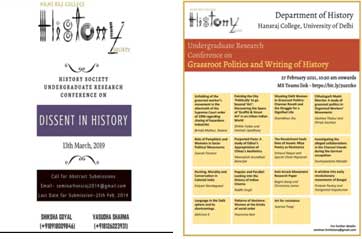 The History Society of the Department trains students to conduct research conferences and workshops. As part of organising the annual undergraduate conference, the students engage in identifying a research theme, write a concept note, reach out to other colleges and universities, announce the conference, and conduct national conference. The National level research conference provides them an opportunity to interact with students from various universities in India and abroad. The undergraduate research conference promotes creative thinking as well as research skills.