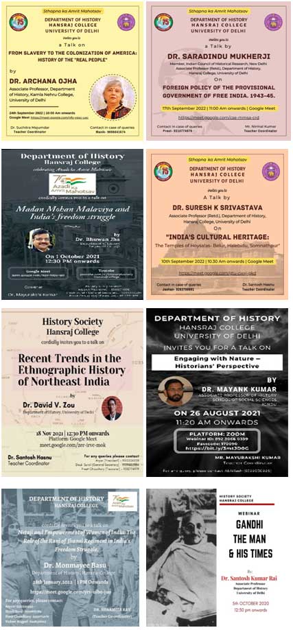 NAAC Grade A++ with CGPA 3.71 NIRF Rank # 3 (Amongst Colleges)The department has been regularly organizing lectures by eminent national and international speakers spanning the entire discipline of history.