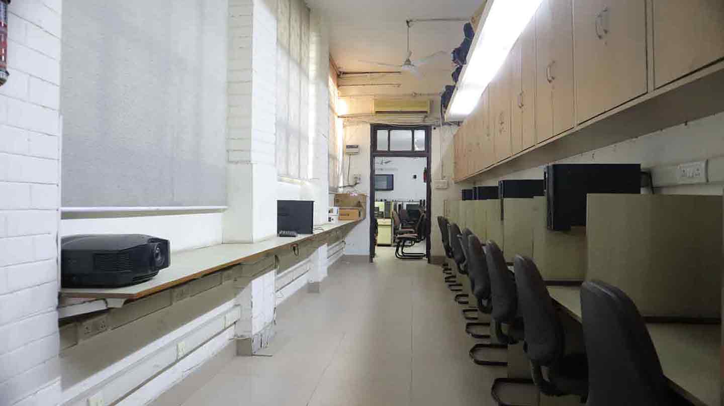 The College has four well-equipped and well-managed Computer Laboratories. Approximately 130 state-of-the-art machines from IBM, HCL & HP and LCD Projectors and an interactive board are available along with all necessary peripherals. The machines and programmes are continuously upgraded to ensure the market relevance of acquired skills.