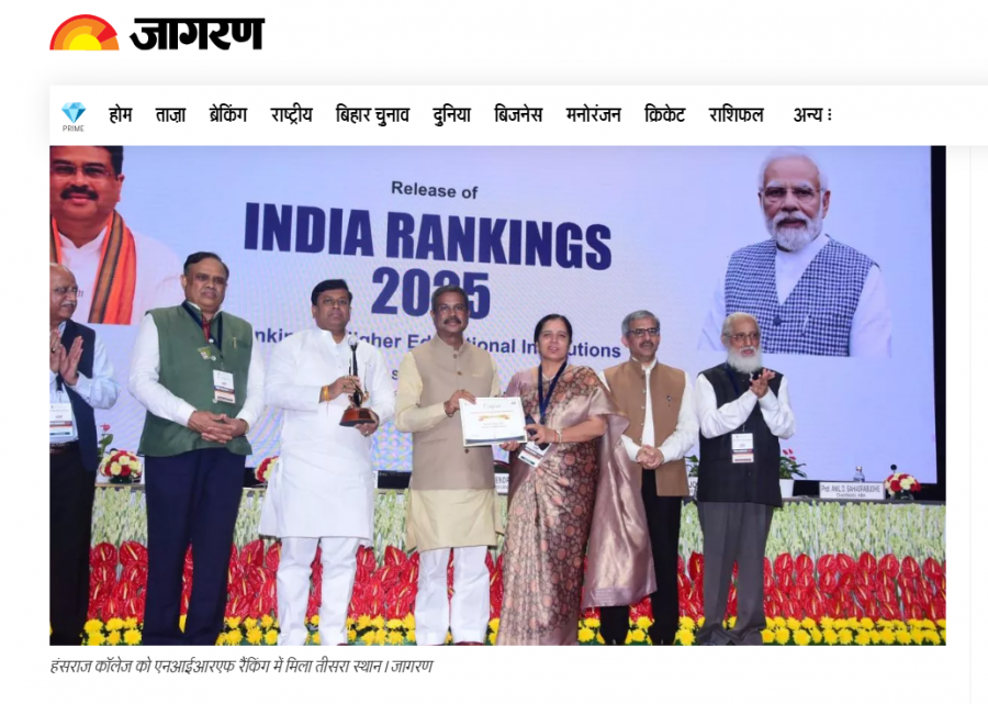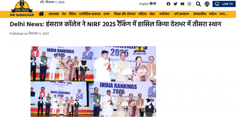 The Delhi University’s (DU) Hansraj College has secured the third position in the National Institutional Ranking Framework (NIRF) 2025 ranking for colleges, recording its best-ever performance after a jump o......