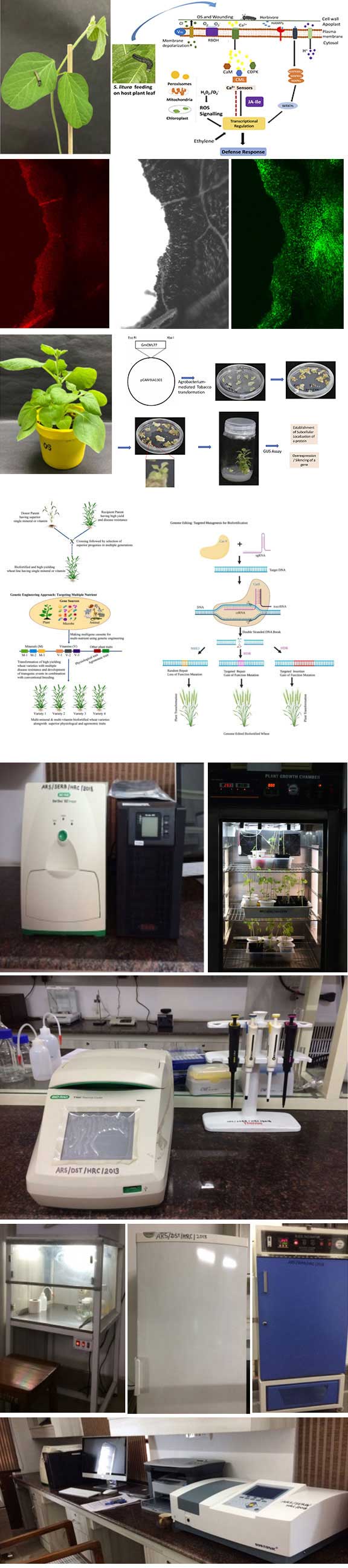 JCBCPG has been established to promote research in the field of Plant Genomics with special emphasis on Plant Protection. Plants being sessile are very often attacked by pests and pathogen. In order to defend themselves they have developed a sophisticated defense / tolerance strategy. Researchers working at this center are keen to understand molecular aspects of defense mechanism (especially signalling pathways involved in plant defense: calcium signaling and Mitogen-activated protein kinase pathway) by using “omics”, genetic engineering, imaging and biochemical techniques in order to plan and implement future strategies for controlling biotic stressors. The center is well-equipped to perform Molecular Cloning, Plant transformation, Protein-protein interaction, Transcript profiling, Protein profiling, Docking and simulation.