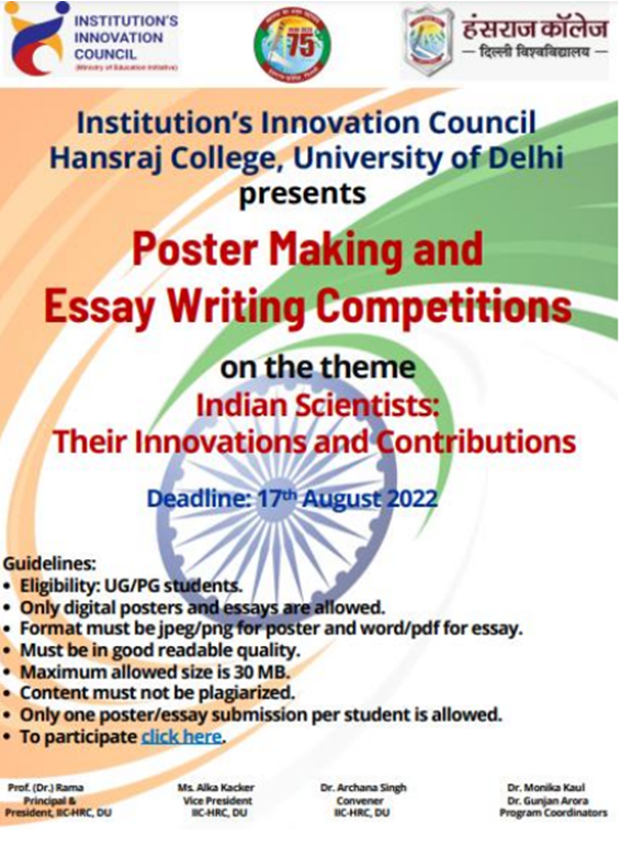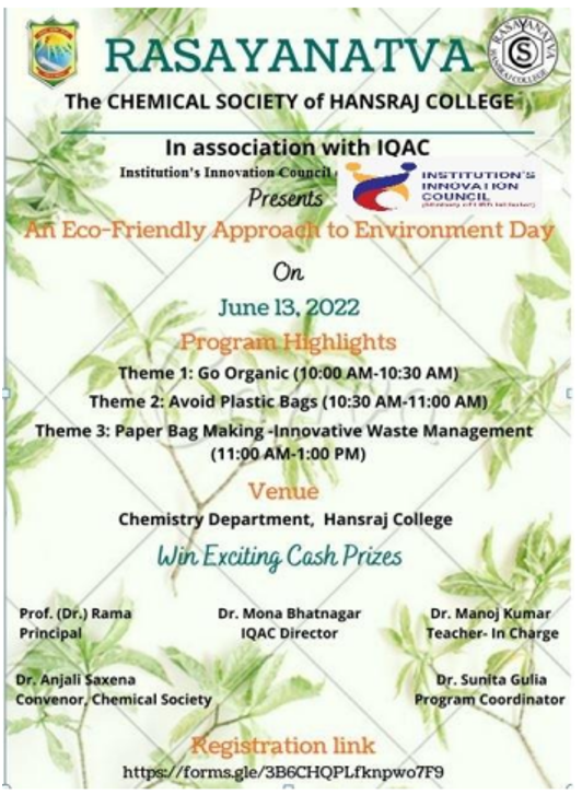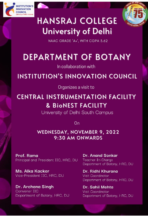 Organized By: Department of chemistry, Hansraj college in collaboration with IIC