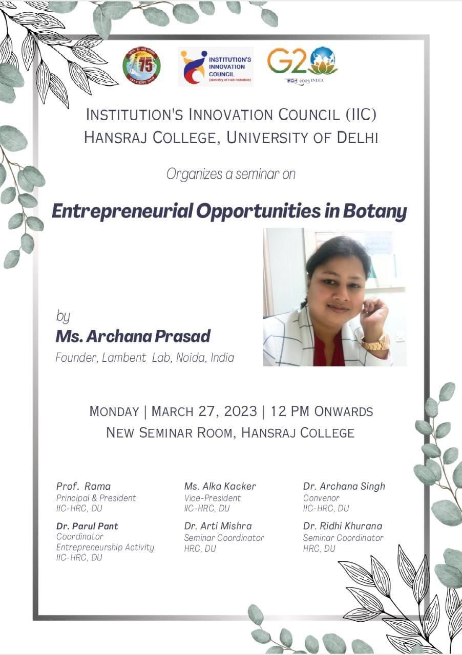 Organized By: Institution Innovation Council, Hansraj College, DU