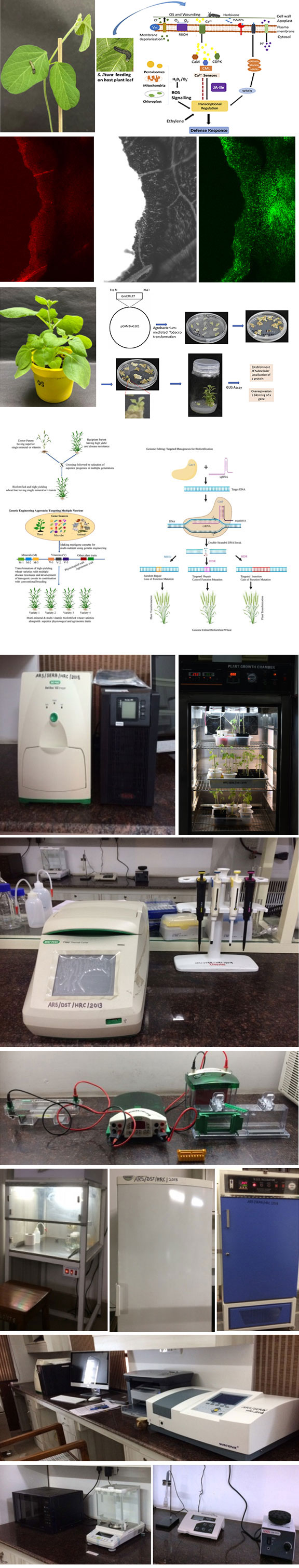 JCBCPG has been established to promote research in the field of Plant Genomics with special emphasis on Plant Protection. Plants being sessile are very often attacked by pests and Pathogens. In order to defend themselves they have developed a sophisticated defense / tolerance strategy. Researchers working at this center are keen to understand molecular aspects of defense mechanism (especially signalling pathways involved in plant defense: calciumsignaling and Mitogen-activated protein kinase pathway) by using “omics”, genetic engineering, imaging and biochemical techniques in order to plan and implement future strategies for controlling biotic stressors. The center is well-equipped to perform Molecular Cloning, Plant transformation, Protein-protein interaction, Transcript profiling, Protein profiling, Docking and simulation.