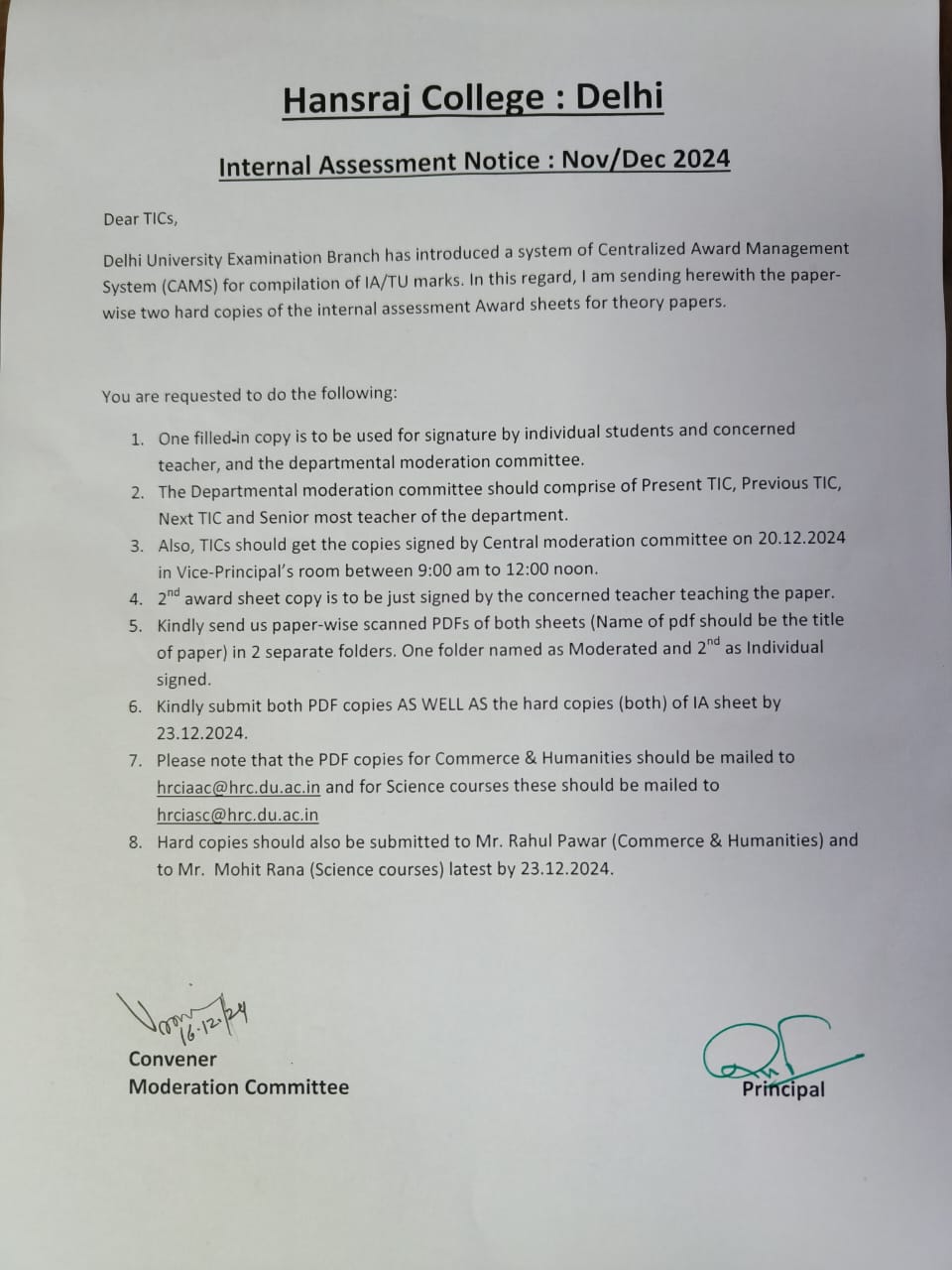 The College adheres to the Moderation Committee as per the Ordinance VIII E: Internal Assessment. Members of the Department Moderation Committee include: