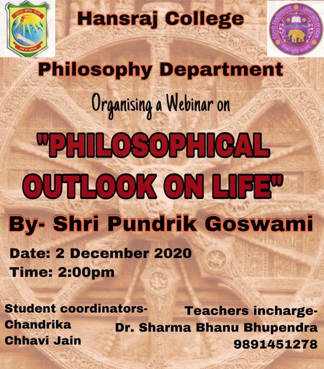 NAAC Grade A++ with CGPA 3.71 NIRF Rank # 3 (Amongst Colleges)Mīmāṃsā is a Sanskrit word that means ‘reflection’ or ‘critical investigation’. It refers to a rich heritage of contemplation, with reflections on the interpretations of certain Vedic texts. Mīmāṃsā, the Philosophical Society of Hansraj College is the embodiment of the spirit of critical thinking and consideration. Keeping the essence of Vedic wisdom in mind, this society aims to bring people together for dialogue, deliberation and debate on various philosophical issues that surround us in everyday life. The society also seeks to provide a platform for anyone who keeps keen interest in philosophical issues and concepts and wants to exchange their thoughts with others.