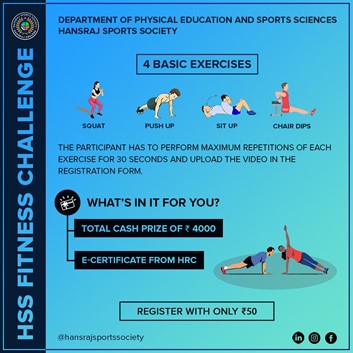 NAAC Grade A++ with CGPA 3.71 NIRF Rank # 3 (Amongst Colleges)The Hansraj Sports Society represents the field wing of the Department of Physical Education and Sports Sciences of Hansraj College. The society is committed towards the refinement of the sports infrastructure, athletes, and providing new and advanced opportunities in the arena; however, it is not limited to the department of sports and accommodates all those who have the germ of brilliance and the inquisitiveness to excel. Functioning as the sports society of the college which is renowned to have the finest sports arena in the university circuit, it has organized events of sweeping magnitude. Having their aim fixed to equate the importance of scholastics with exercise, they have managed to transcend the awareness about sports and its activities on all platforms in all formats.