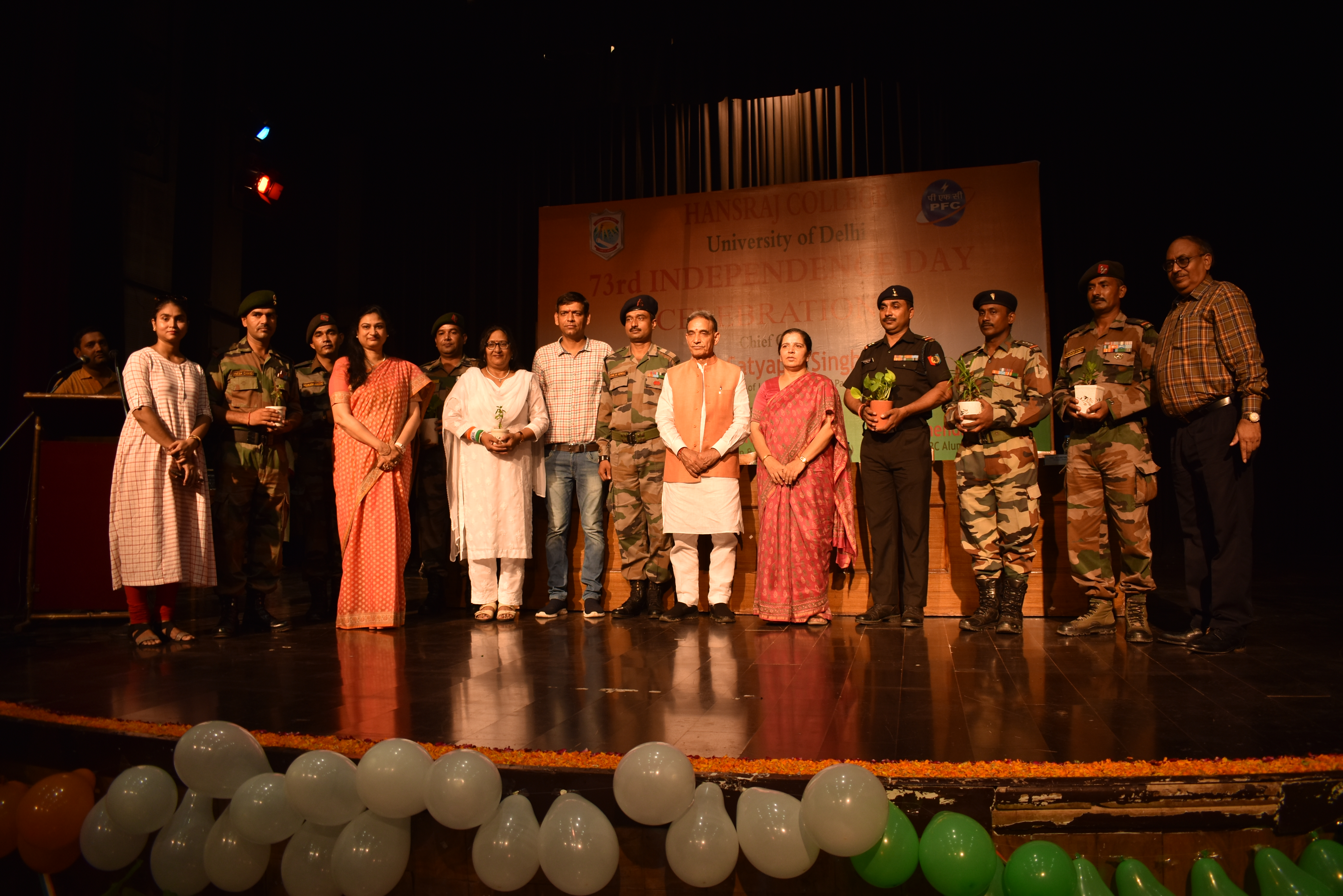 Republic day was celebrated by the cadets of NCC Hansraj through blended (offline and online) mode on 25th January. Flag hoisting was done in the presence of Prof. (Dr.) Rama and Chief Guest Dr. Balaram Pani (Dean of Colleges, University of Delhi) and Mr. Mahendra Goel (President, Hansraj College Alumni Association). The event was live streamed on Facebook as well as YouTube and students and cadets of Hansraj college were present throughout this celebration.