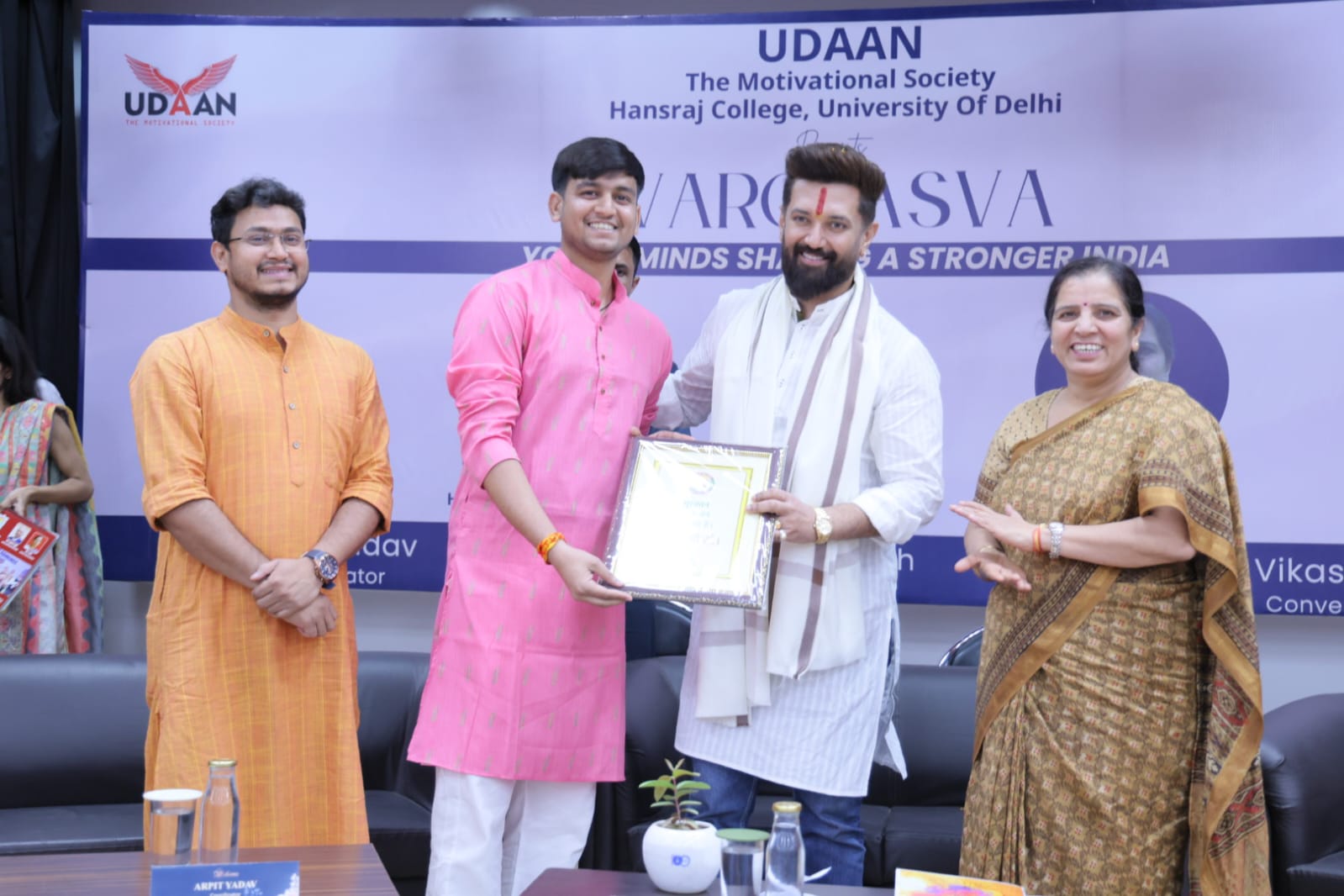 NAAC Grade A++ with CGPA 3.71 NIRF Rank # 3 (Amongst Colleges)Motivation is the process that initiates guides and maintains goal- oriented behavior. Motivation is what explains why people or animals initiate or terminate a certain behavior at a particular time. Motivational states are commonly understood as forces acting within the agent that created a disposition to engage in goal- directed behavior. It is often held that different mental states compete with each other and that only the strongest states determine behavior. This means that we can be motivated to do something without actually doing it. The paramagnetic mental state, like beliefs about what one ought to do or intentions may also provide motivation. The motto of our Udaan society is to improve the motivational level of students, enhance their confidence, to make them enthusiastic, cheerful and motivated to achieve their goals. Our society also helps to increase the IQ level of students and develops critical thinking among them. Our society invites eminent personalities from different walks of life so that students can interact with them and can develop their personalities and can give the right path for their future.