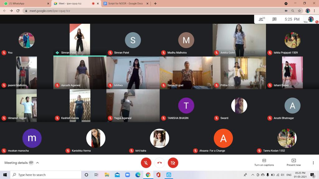 Terpsichorean collaborated with the NGO Ahaana which helps covid affected individuals and conducted an online dance workshop for the Covid-19 affected families on 1st May 2021. It was a noble effort by the NGO to include and approach us to create an impact and we were more than happy to do so. The receipts for the workshop as well as the awareness about the plight of people undergoing difficulties went towards this noble cause. Terpsichorean really made the most out of the pandemic struck year and will continue to do so in the future. This fun endeavour was a great success, and we were incredibly happy to put our dancing shoes to good use. We encouraged people to dance in midst of all the stress and we tried to help people in little ways we could. Noor- Dance for a cause received great feedback from everyone who participated, and we had a great time choreographing the dance and it was a thrilling experience for most of our team members as they took their first workshop.
