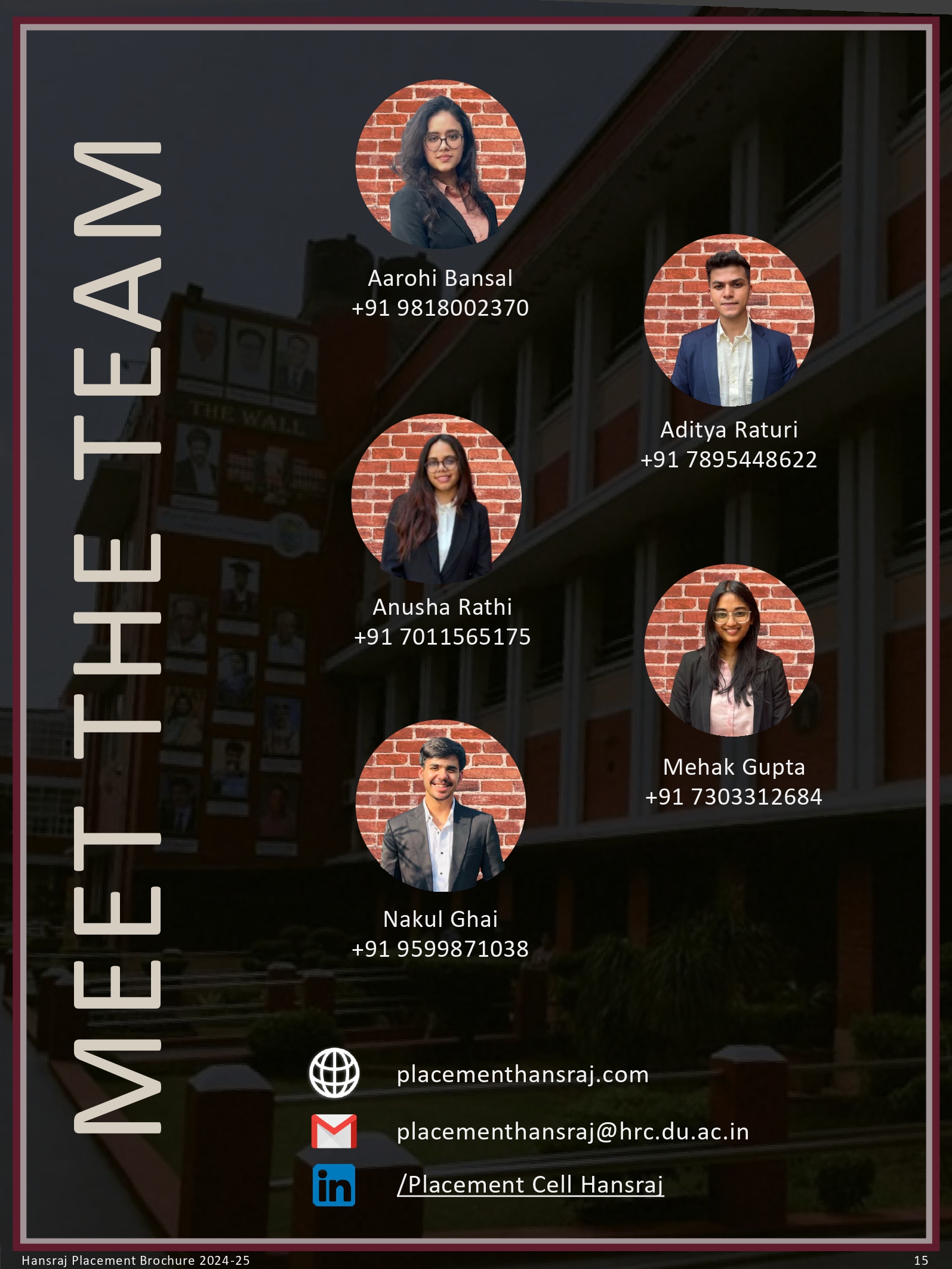 The Placement Cell, Hansraj College is a student run body, headed by teacher conveners appointed by the college administration, working towards the common goal of getting students placed in various firms. It is a team of 40 diligent individuals ensuring smooth recruitment drives for the recruiters. After completing another glorious academic year which saw 180 recruiters with over 215 offers and skyrocketing packages, we mark the opening of the Placement Season 2021-22 with full vigour.