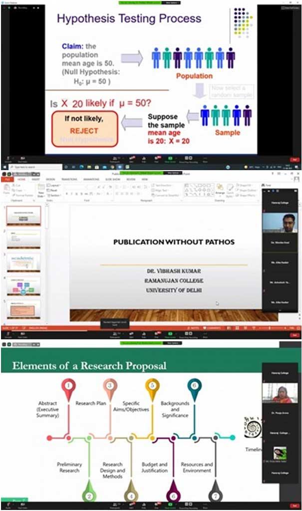 Mahatma Hansraj Faculty Development Centre (A Centre of Ministry of Education, Govt. of India under PMMMNMTT Scheme), Hansraj College, organised a one-week online faculty development programme on ‘Basics of Research’ for the mentee institutes. It was an extremely successful and informative session as it was diligently planned to provide a comprehensive and extensive understanding on academic research. The FDP provided an opportunity to the academicians to enhance their research skills and understand research methodologies. A thorough knowledge related to types of research, review of literature, identification of research problem, gathering data, building theoretical framework, generation of hypothesis etc. was shared by the esteemed academicians.